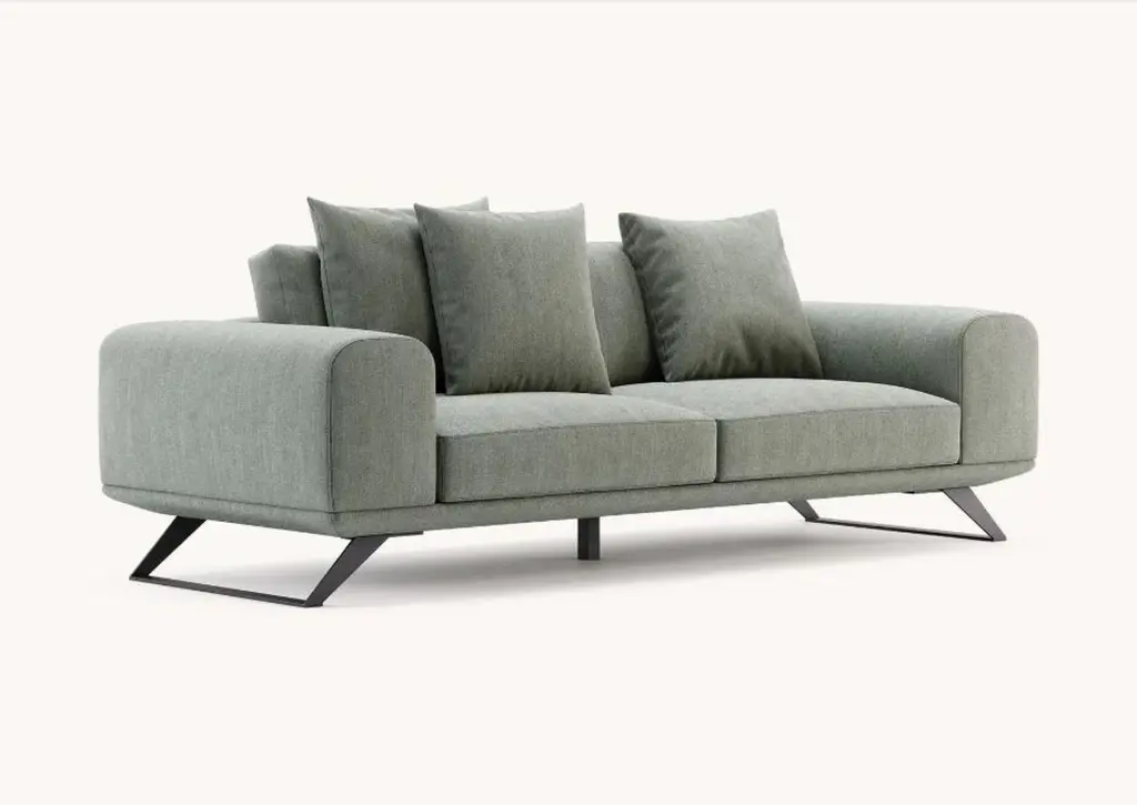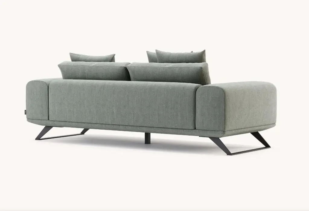 Aniston 3 Seats Sofa by DomkapaMaterials: Fiber, Black Texturized Steel. Dimensions: W 230 x D 97 x H 83 cm.Also available in different materials. Please contact us.Aniston sofa is a modern design piece where rectangular lines merge harmoniously with bold angles. Supported by multiple stainless steel trapeze feet, both armrests are wide and padded for extra comfort. Along the back, padded cushions come together to form a perfect seating piece that invites you to experience moments of happiness.Available in two-seater, three-seater, and chaise longue versions, this piece is the perfect addition to any living room.Domkapa holds a tremendous passion for detailed stitching, presenting several similarities to the haute-couture philosophy focused on the value of a “made by hand”. Based in Portugal, Domkapa was founded in 2009 as a Private Label. The long and fruitful path, full of experience and achievements inspired the brand’s new identity and independence, in 2017.Domkapa challenges its team to create the perfect daily meeting between design and comfort in each piece of the brand’s collections. Our design team works side by side with the production, and this organic synergy allows the creation of innovative designs.
