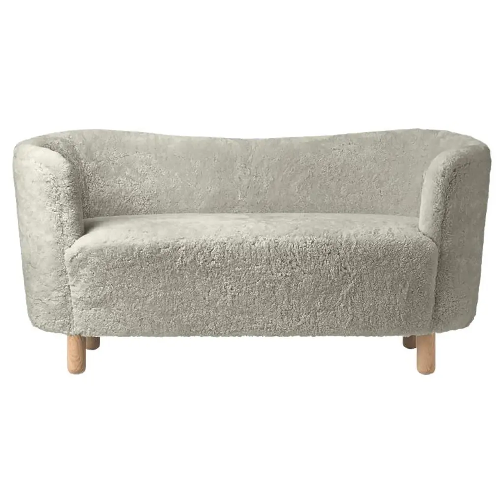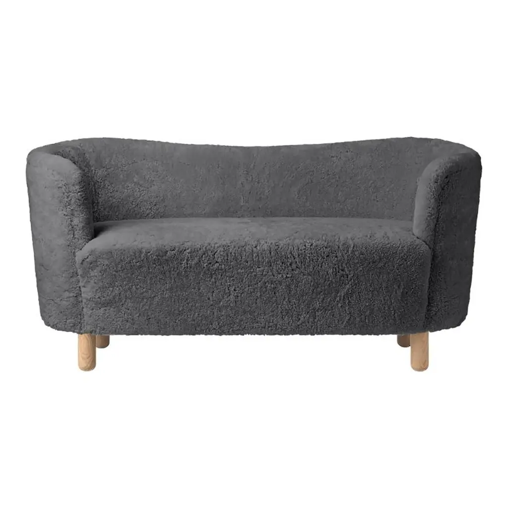 Antrachite Sheepskin and natural oak mingle sofa by LassenDimensions: w 154 x d 68 x h 74 cm Materials: Sheepskin, Oak.The Mingle sofa was designed in 1935 by architect Flemming Lassen (1902-1984) and was presented at The Copenhagen Cabinetmakers’ Guild Competition in the same year. It was subsequently praised for its qualities as a small but elegant sofa in the professional journal “The Architect”. Flemming Lassen loved to travel, and he was often inspired by his journeys throughout Europe. He was very taken with both Italy and France, and had a burning desire to tour those countries on his motorcycle. Flemming Lassen wanted to create a sofa made for conversation with a comfort that invited people to stay seated and talk together for long periods of time. The armrests were designed to encircle the sitters, generating intimacy and transforming the sofa into a cosy place to relax. Flemming Lassen took inspiration from both French elegance and modern Italian style, and transferred the trends and his own ideas to a small, upholstered sofa called Mingle.By Lassen is a Danish design brand focused on iconic designs created by Mogens and Flemming Lassen, founded by Lassens’ relatives in 2008. Brothers Mogens (1901-1987) and Flemming (1902-1984) Lassen are known as two of Denmark’s greatest architects and designers. Both were renowned pioneers of Danish functionalism and modernist architecture, honoured with numerous prestigious medals and awards. Headed by Mogens Lassen’s grandson Søren Lassen, By Lassen carries on the brothers’ design philosophy by manufacturing their iconic designs as well as products by other designers that complement the Lassen’s functionalist style. The company’s mission is to continue the tradition of timelessness, functionality and quality, and to introduce the Lassen’s design heritage to new generations.