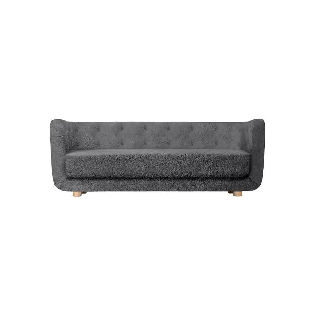 Antrachite sheepskin and natural oak Vilhelm sofa by LassenDimensions: W 217 x D 88 x H 80 cm Materials: sheepskin, oak.Vilhelm is a beautiful padded 3-seater sofa designed by Flemming Lassen in 1935. A sofa must be able to function in several ways. It should invite calm and contemplation. Create a private space you can hide in and at the same time invite to life and play. It must be able to withstand sitting on the backrest or on the armrests and then it must be able to stand in the middle of the room if you want to.In addition to being aesthetically beautiful and harmonious, the design makes absolute sense in relation to these parameters.By Lassen is a Danish design brand focused on iconic designs created by Mogens and Flemming Lassen, founded by Lassens’ relatives in 2008. Brothers Mogens (1901-1987) and Flemming (1902-1984) Lassen are known as two of Denmark’s greatest architects and designers. Both were renowned pioneers of Danish functionalism and modernist architecture, honoured with numerous prestigious medals and awards. Headed by Mogens Lassen’s grandson Søren Lassen, By Lassen carries on the brothers’ design philosophy by manufacturing their iconic designs as well as products by other designers that complement the Lassen’s functionalist style. The company’s mission is to continue the tradition of timelessness, functionality and quality, and to introduce the Lassen’s design heritage to new generations.