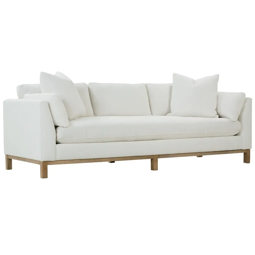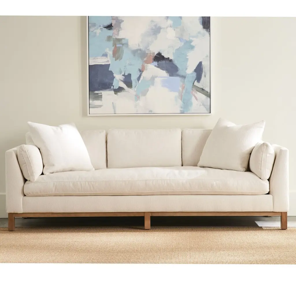 The Apollo Sofa is a mid-century inspired piece crafted using aspects from both modern and traditional styles for the stylish contemporary home. Handcrafted in the USA with a refined and understated style, this bench cushion sofa pairs soft, linen-like upholstery with a solid sustainably-harvested wood frame. It includes two 24" bolster pillows for added comfort and elegance.