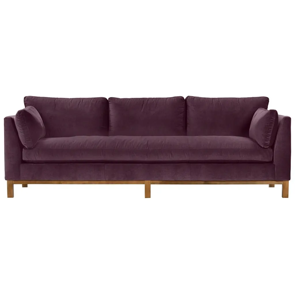 Crisp and clean with elements of geometry, the Apollo Velvet Sofa exudes modernity and clean lines without sacrificing comfort. The feel of the velvet material adds a luxurious touch to this piece. Box cushion bolsters nestled perfectly against angular arms complete the tailored, put-together look of this signature piece. Includes two 24" bolster pillows (non-welted).
