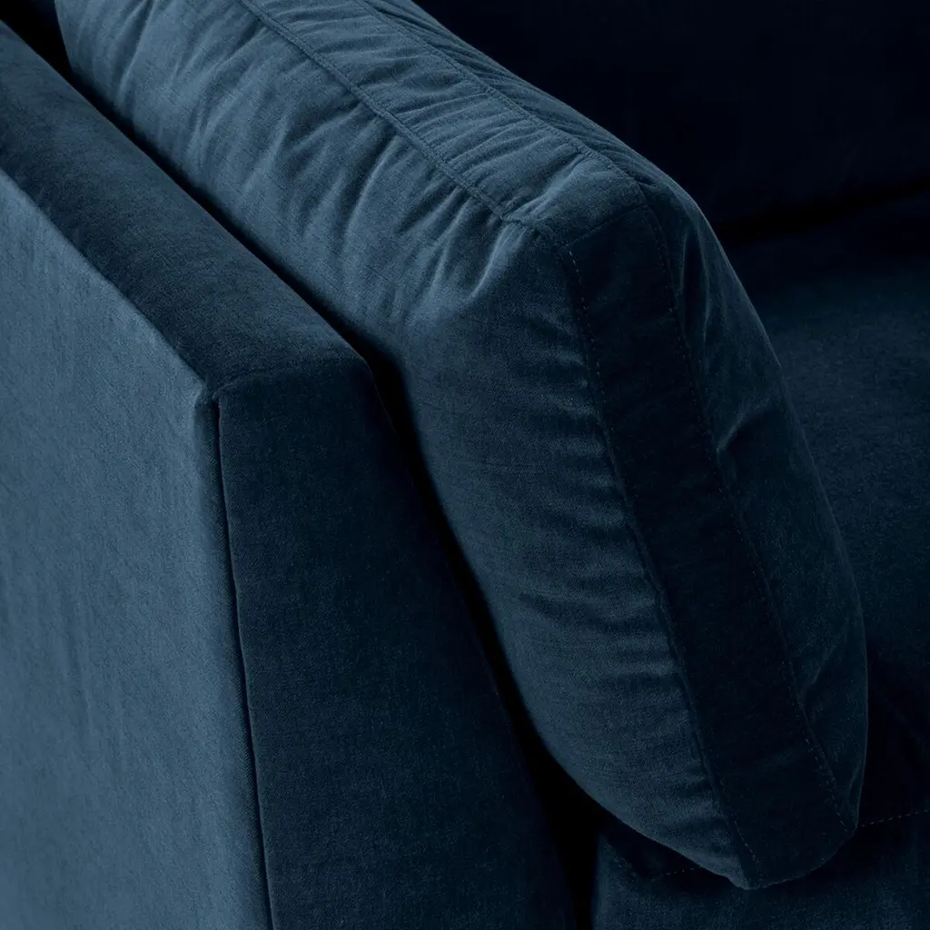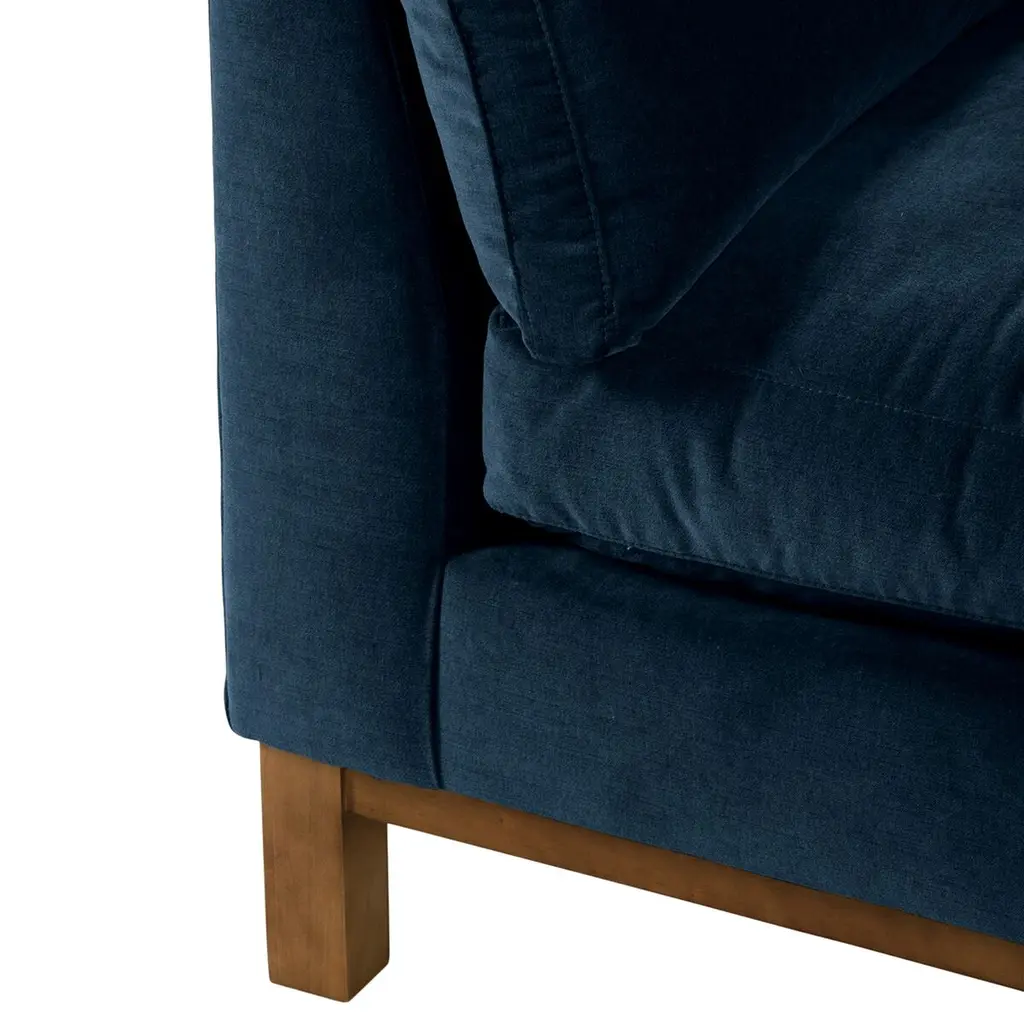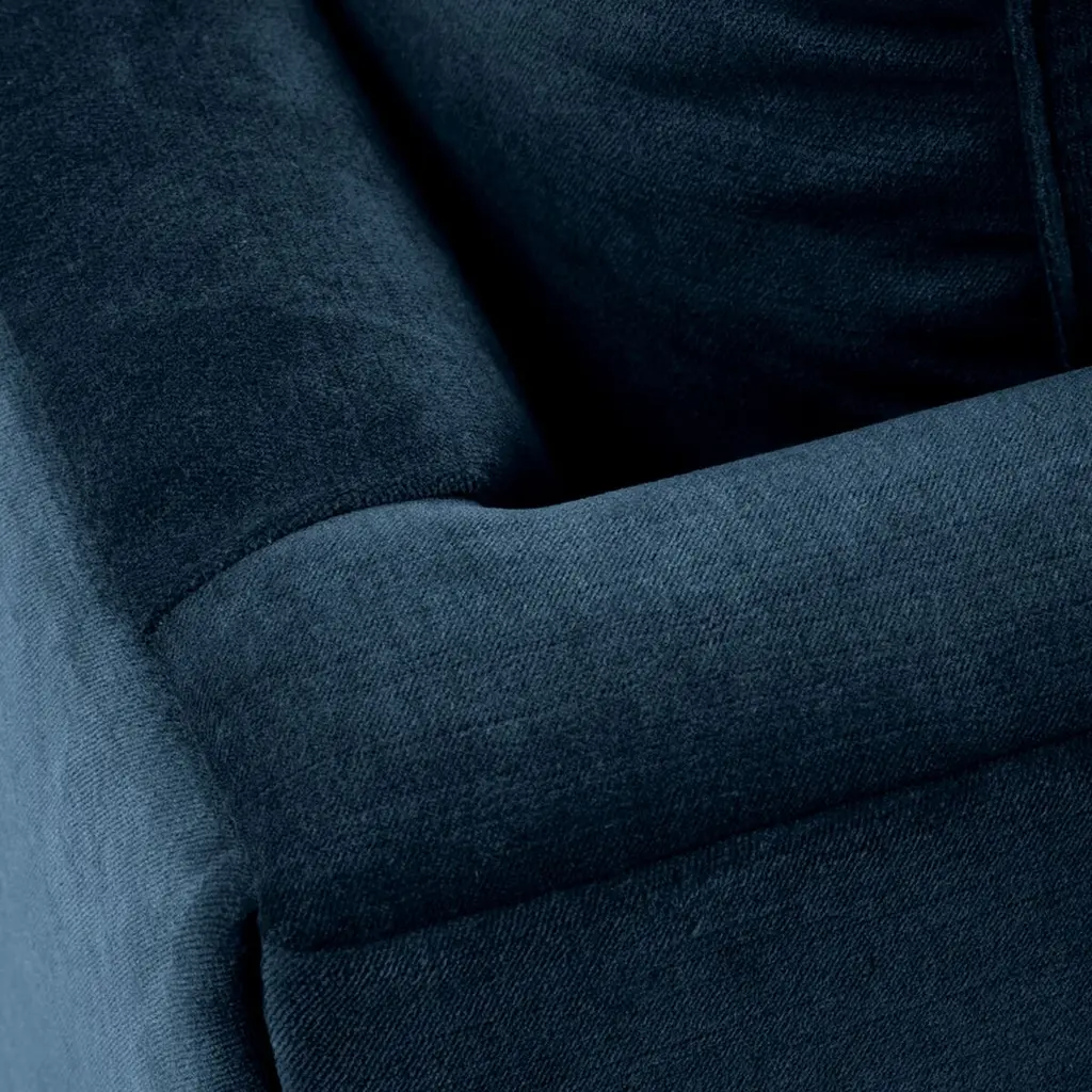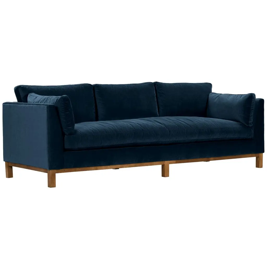 Crisp and clean with elements of geometry, the Apollo Velvet Sofa exudes modernity and clean lines without sacrificing comfort. The feel of the velvet material adds a luxurious touch to this piece. Box cushion bolsters nestled perfectly against angular arms complete the tailored, put-together look of this signature piece. Includes two 24" bolster pillows (non-welted).