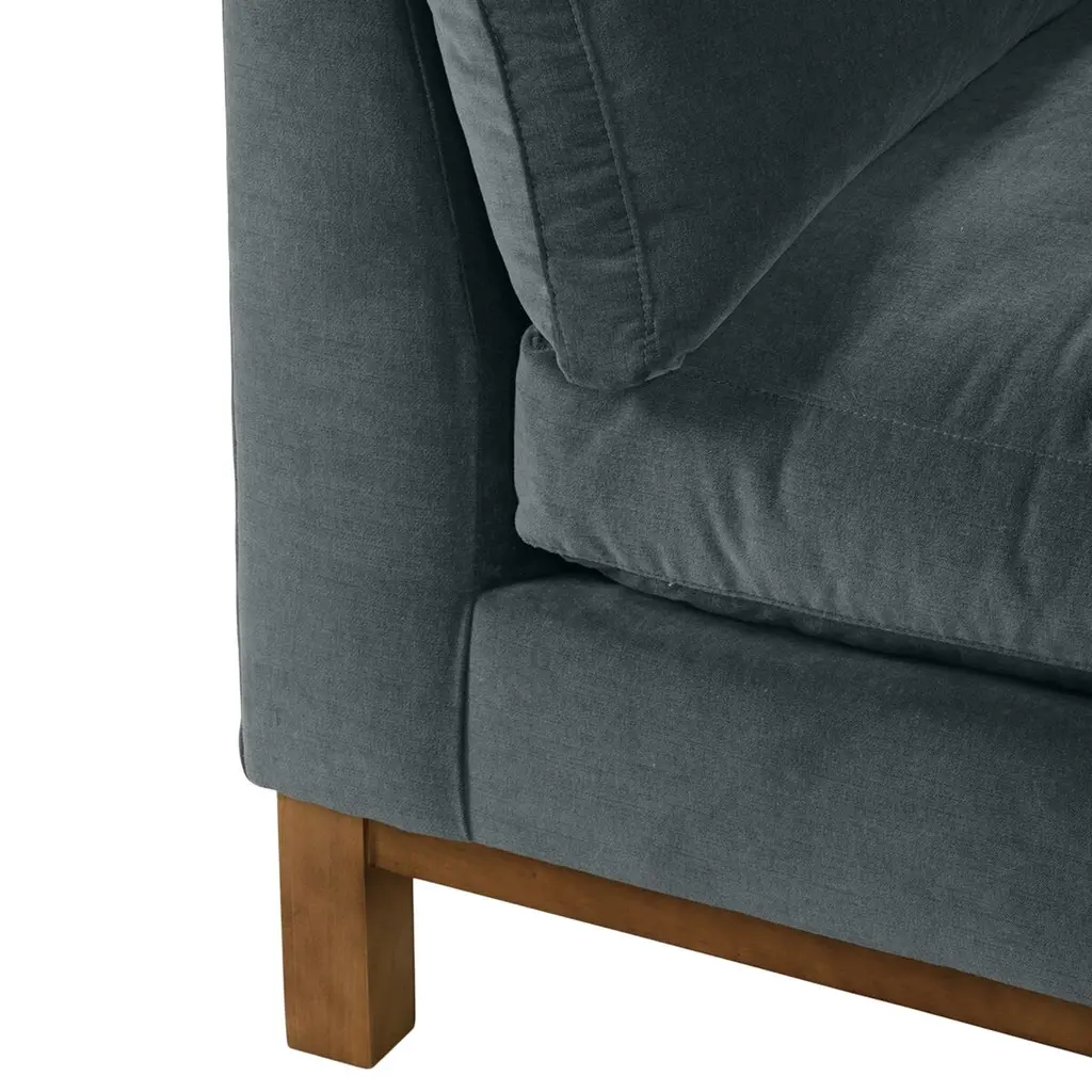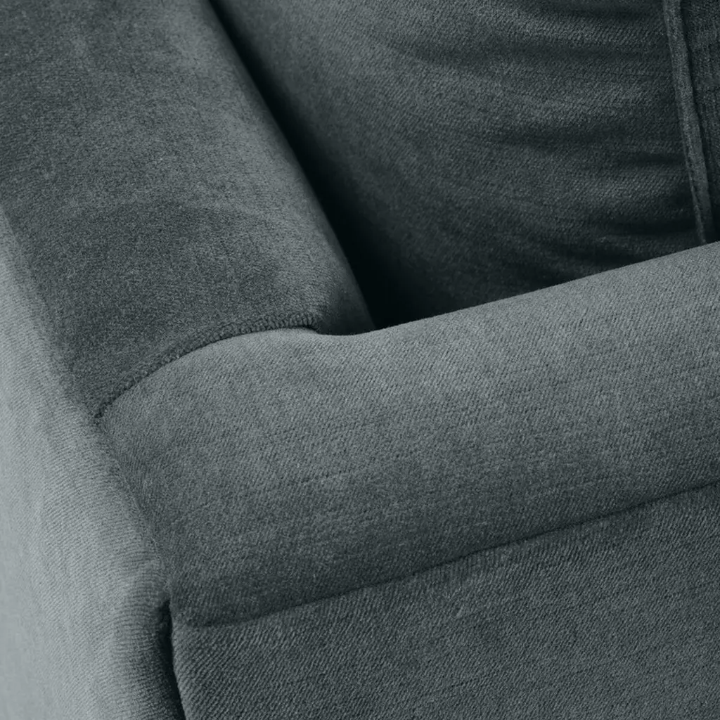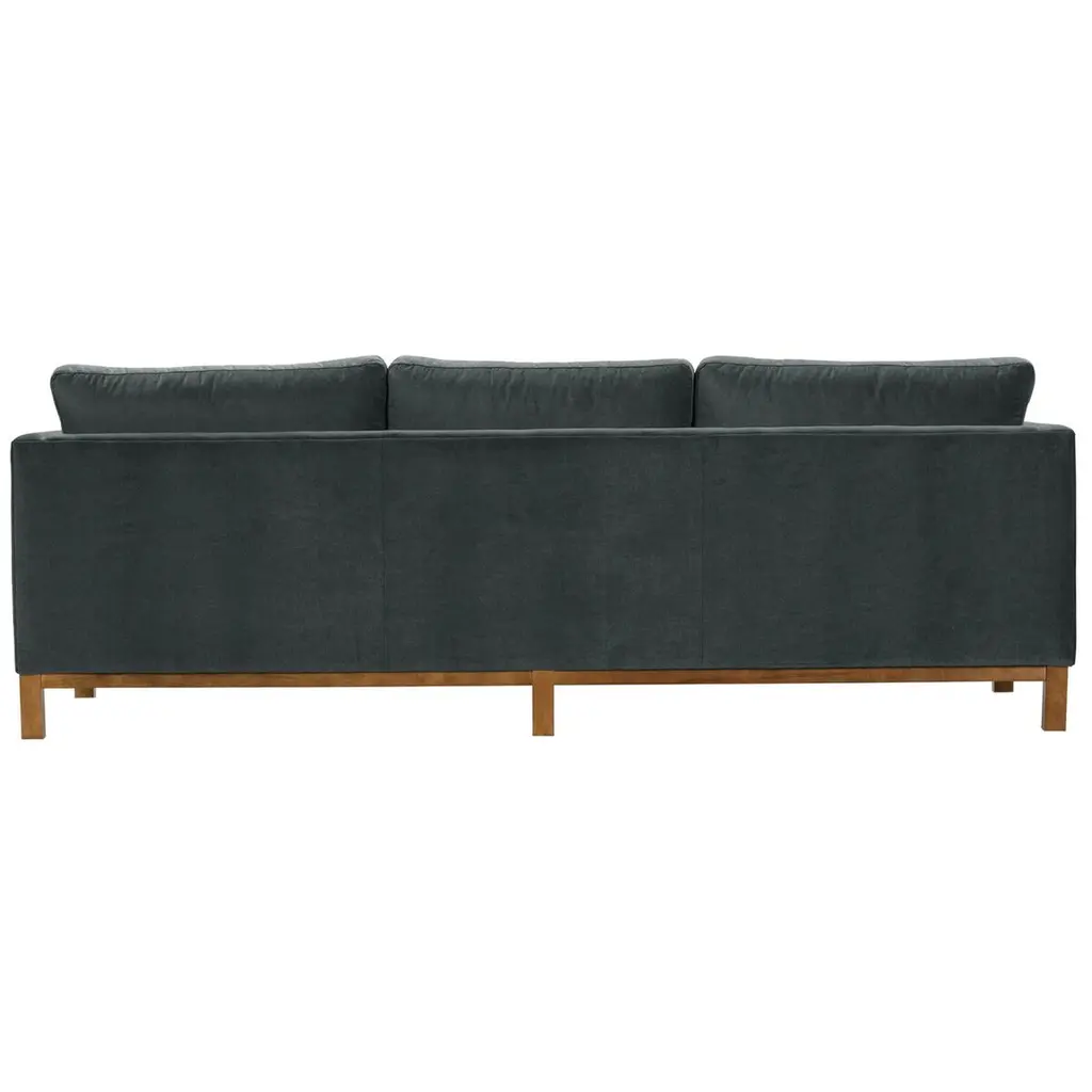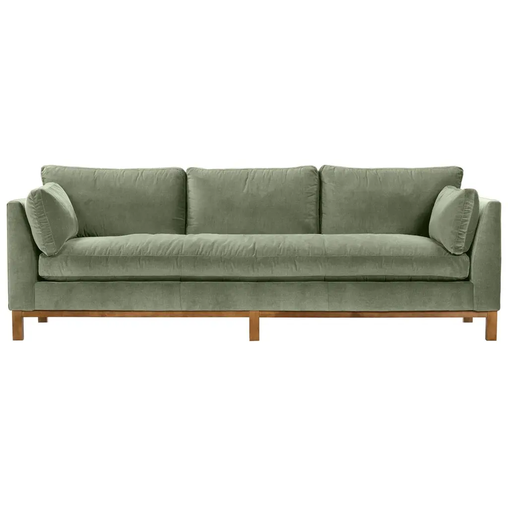 Crisp and clean with elements of geometry, the Apollo Velvet Sofa exudes modernity and clean lines without sacrificing comfort. The feel of the velvet material adds a luxurious touch to this piece. Box cushion bolsters nestled perfectly against angular arms complete the tailored, put-together look of this signature piece. Includes two 24" bolster pillows (non-welted).