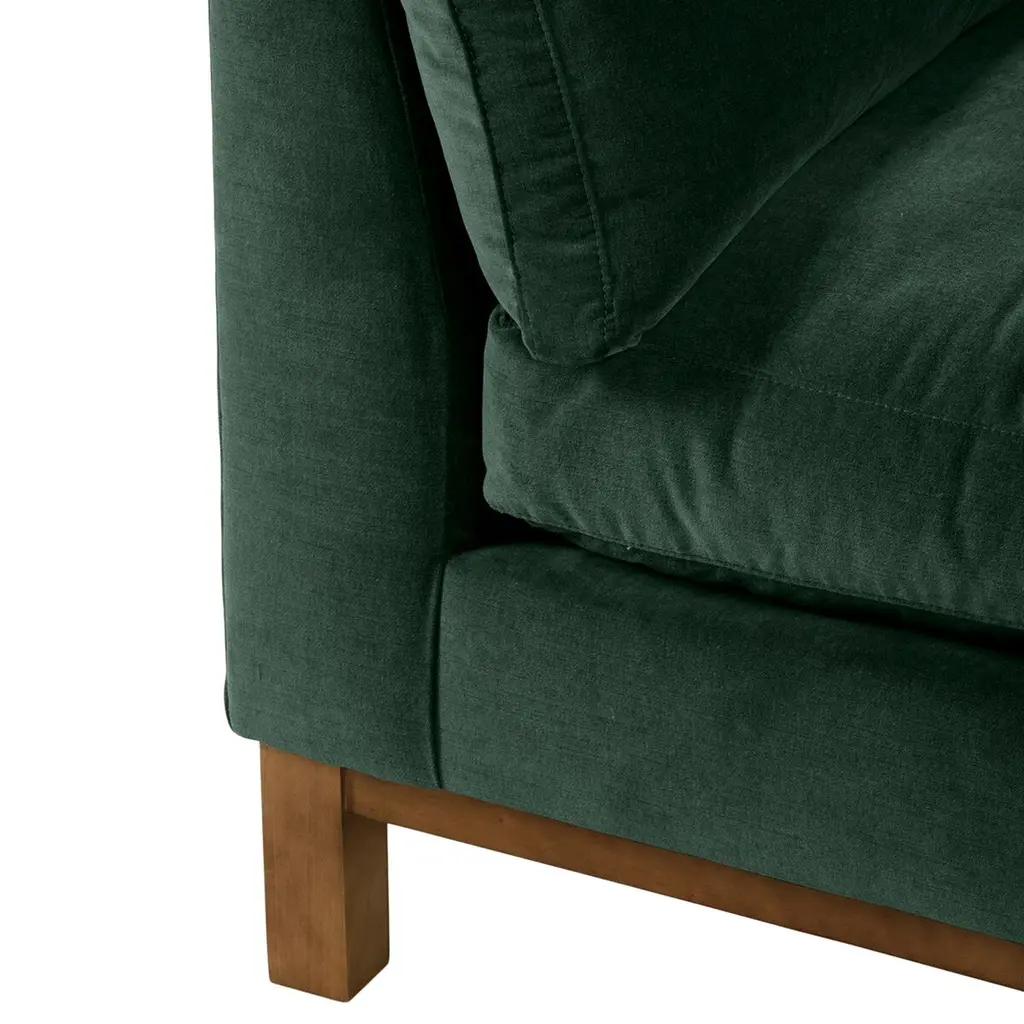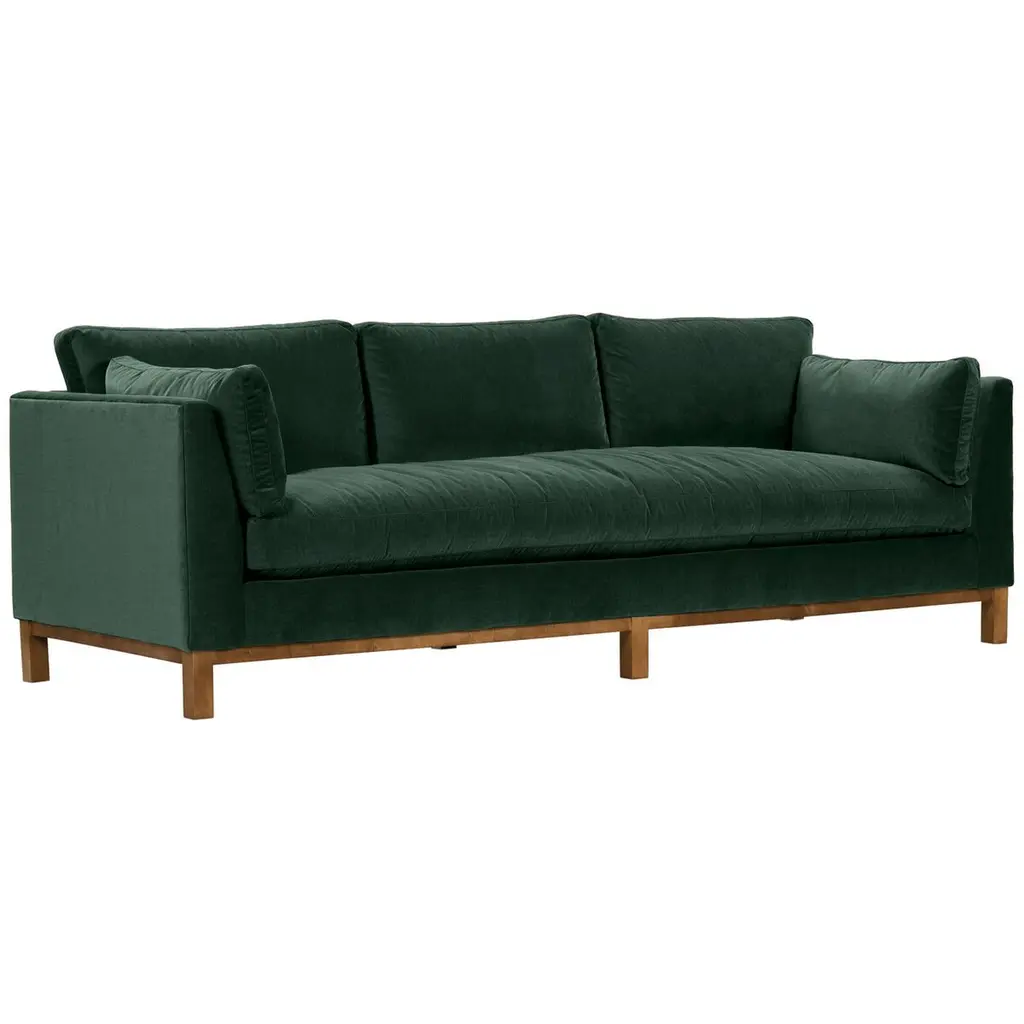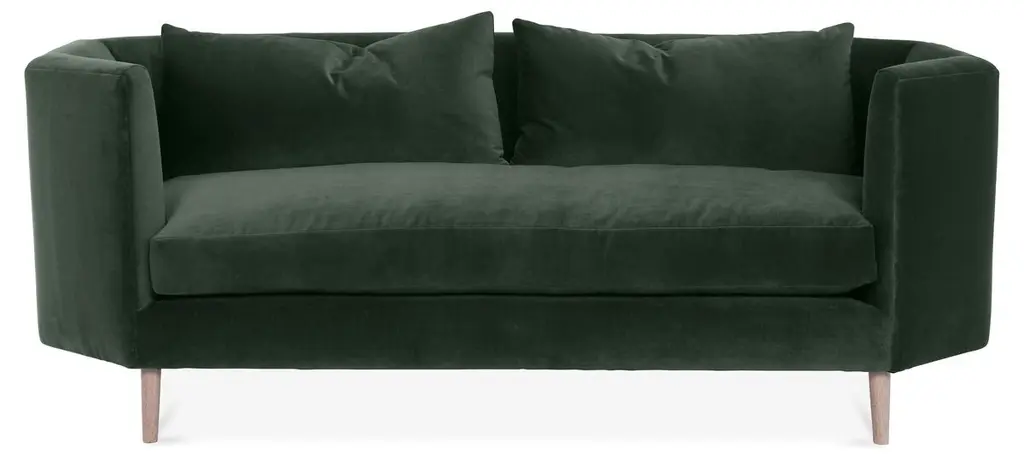Crisp and clean with elements of geometry, the Apollo Velvet Sofa exudes modernity and clean lines without sacrificing comfort. The feel of the velvet material adds a luxurious touch to this piece. Box cushion bolsters nestled perfectly against angular arms complete the tailored, put-together look of this signature piece. Includes two 24" bolster pillows (non-welted).