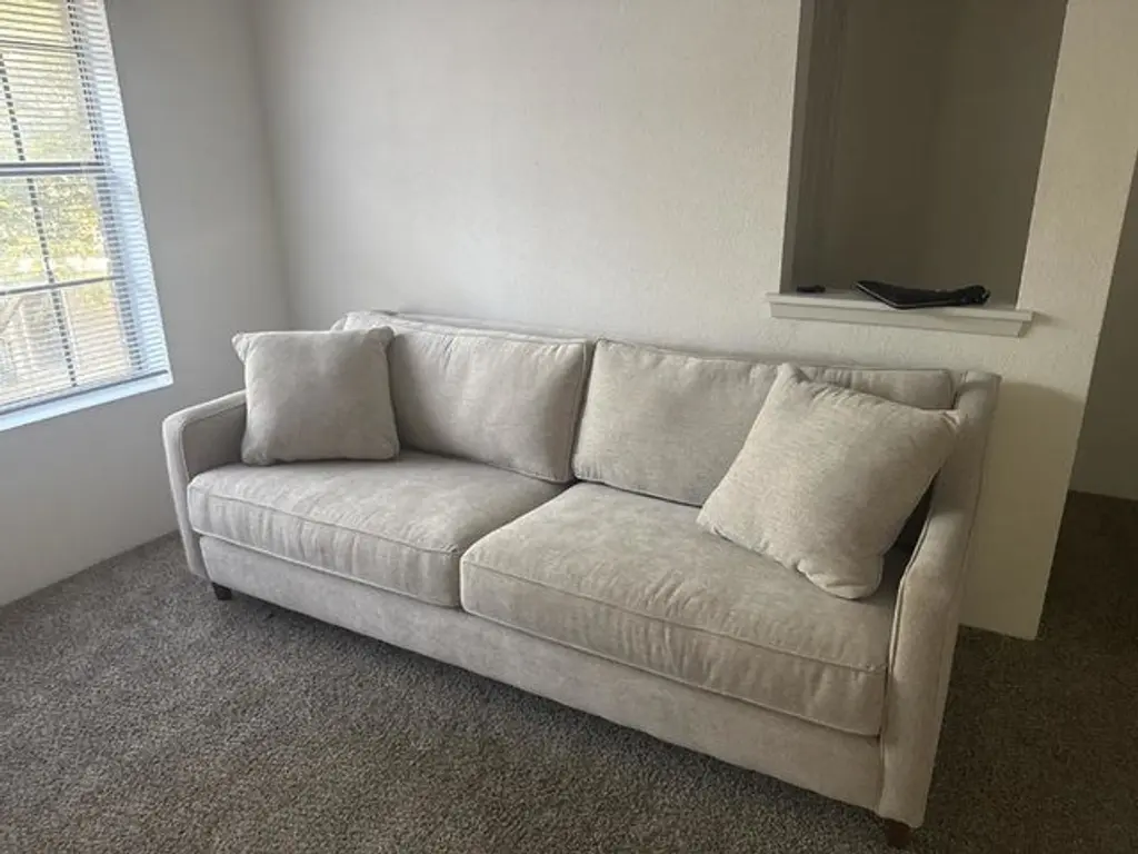 The Apolo Dove 88" Sofa is a perfect addition to any living room. Its modern design and grey chenille fabric make it both stylish and comfortable. The sofa features a recessed armrest and loose back cushions for added comfort.