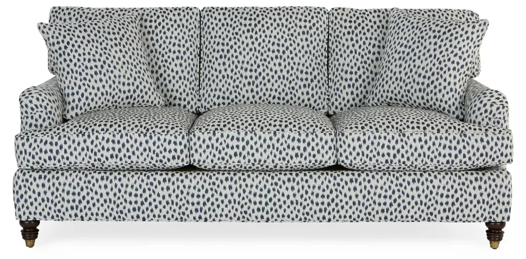 Exclusive to One Kings Lane: Featuring an English Arm and curved detail along the side of the frame this traditional sofa is a beauitful addition to any living room. Constructed of an engineered hardwood-laminate frame, eight-way hand-tied suspension system, and a spring foam cushion with down-proof ticking ensure long-lasting comfort and support. Each piece is handcrafted by skilled artisans in High Point, NC and offers a lifetime warranty on the frame and suspension system and a limited lifetime warranty on the seat cushion.