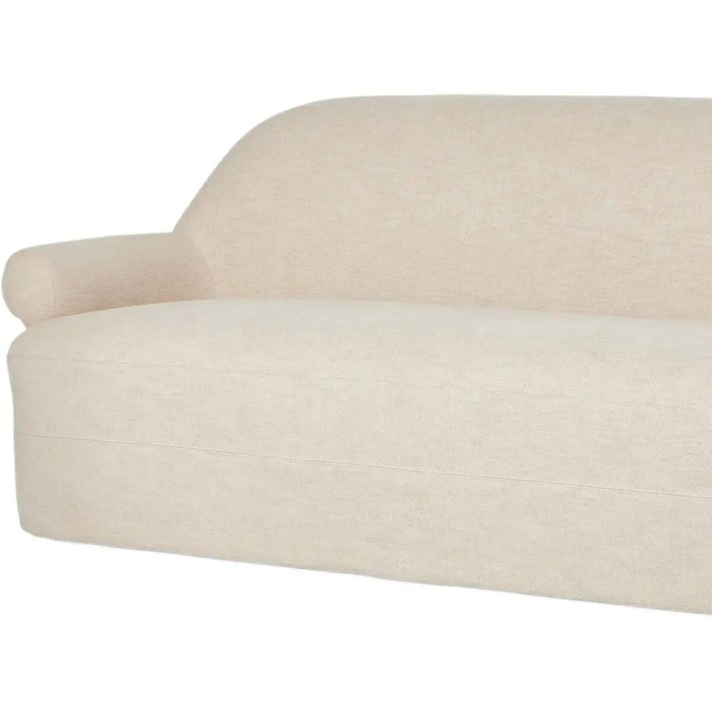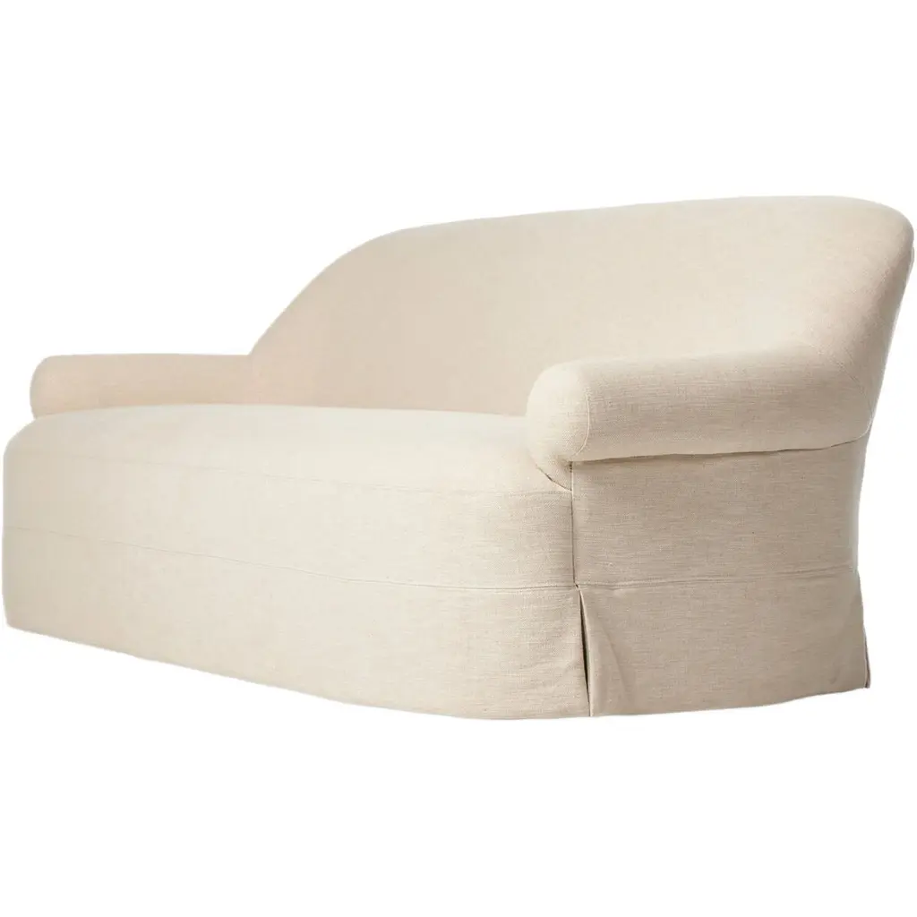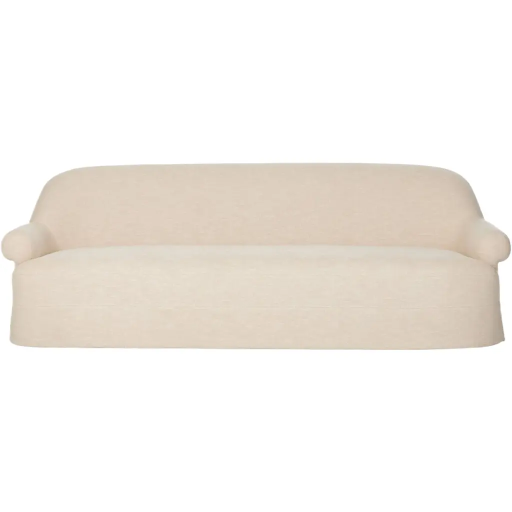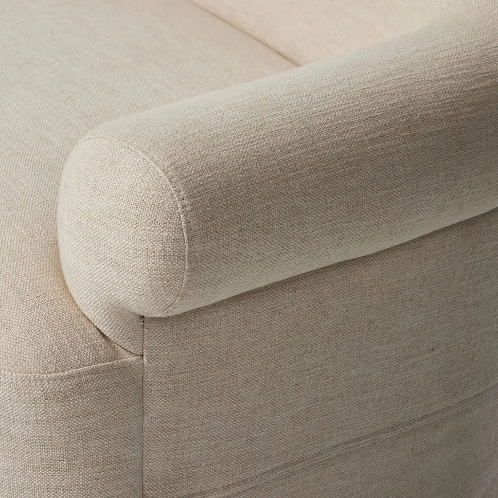 The traditional English rolled arm sofa is updated with a look and feel that's both casual and elevated. Designed with a wide roll arm, high back and S-spring suspension for a relaxed sit and extra comfort. Topped in a fixed cotton/linen blend slipcover for a more laid-back look. A design collaboration by Amber Lewis and Four Hands.