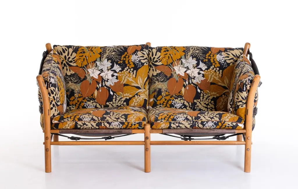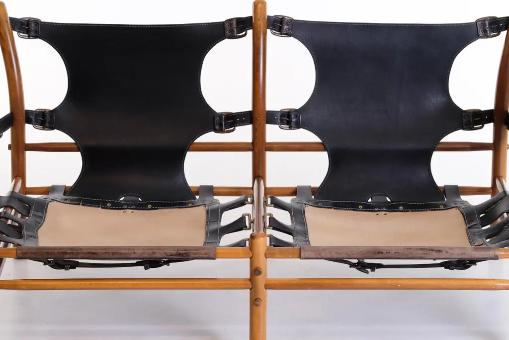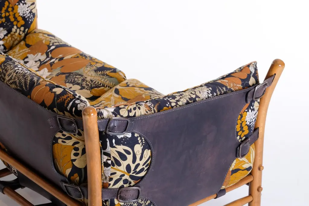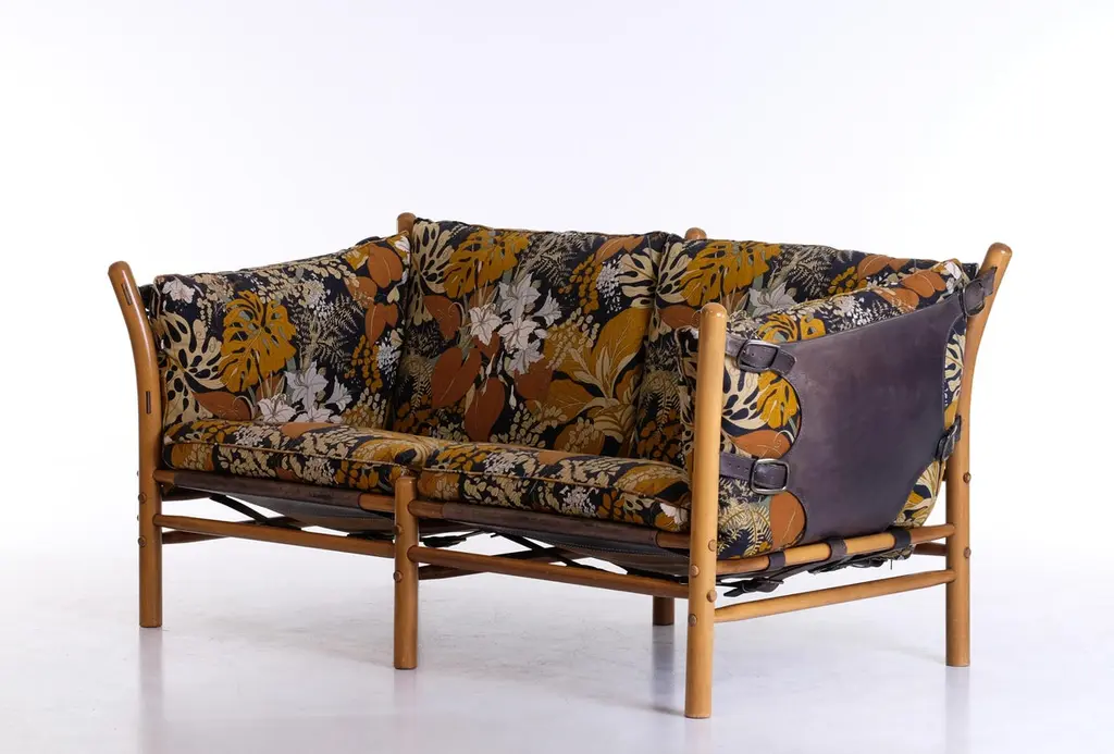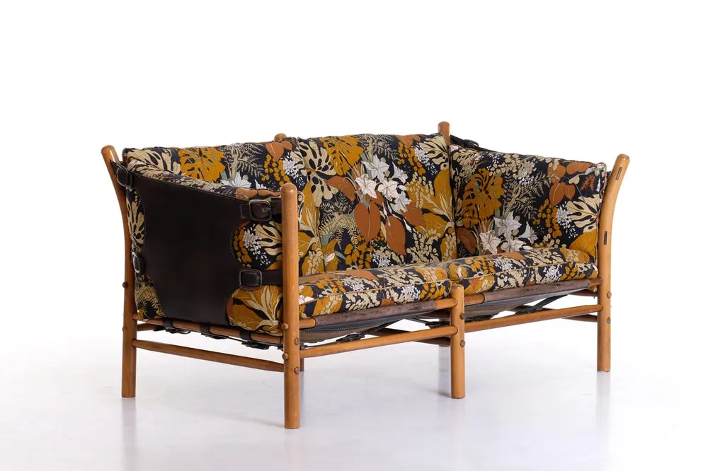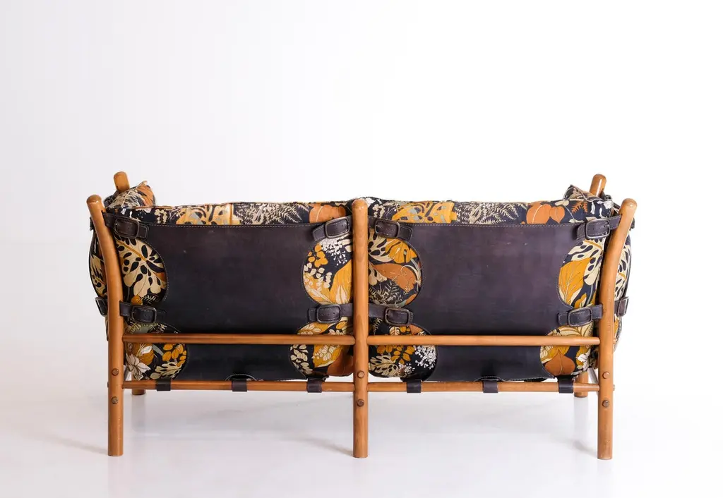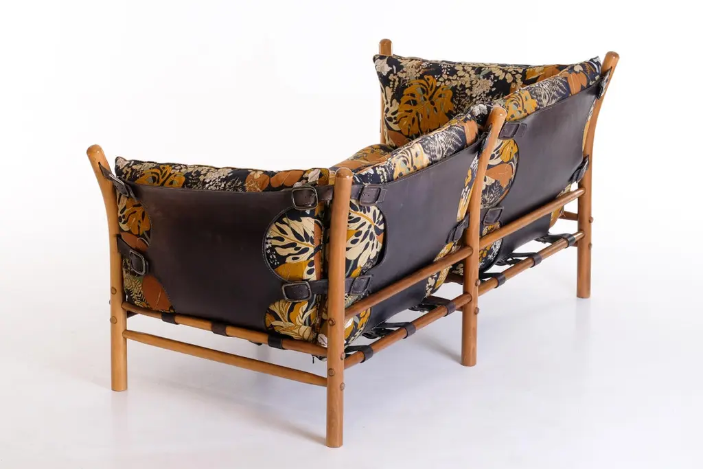 Model "Ilona" two-seat designed by Arne Norell, Sweden, 1970s.Beautiful patinated leather and original fabric, very good condition. Please note: 2 sofas available, listed price is for a single.