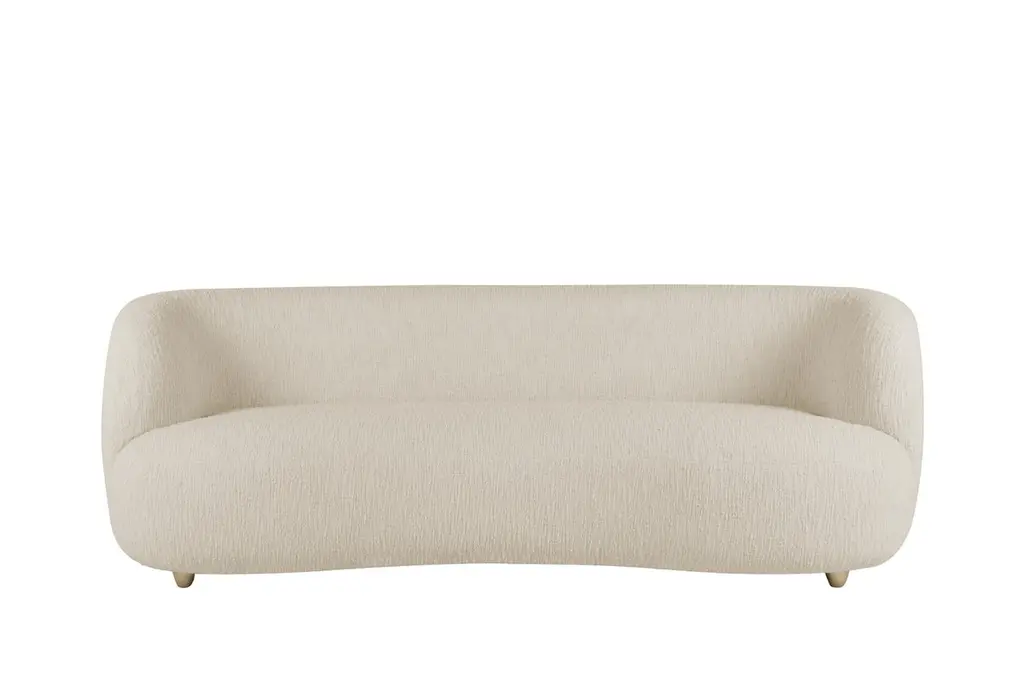 Art Deco Abito sofa, Modern Collection, Handcrafted in Portugal - Europe by Greenapple.The Abito curved sofa was born from a custom design tailored to meet the client’s vision, seamlessly blending our signature aesthetic with the specific requirements of their exclusive space. Its organic silhouette and soft, curved lines exude a sense of quiet sophistication, making it the ideal choice for private spaces that demand both comfort and impeccable style. A perfect balance of design and purpose, the Abito curved sofa transforms any room into a haven of understated luxury.The Abito sofa is upholstered in beige bouclé.Its feet are in solid brushed brass with a matte varnish.Its structure is made from anti-fungal and vermin-free solid steamed beechwood and birch plywood, ensuring strength and stability.Designed to withstand humid environments, it is also suitable for outdoor use when customized with weather-resistant fabric.The Abito sofa can be customized in terms of dimensions, materials and finishes.Abito Sofa Materials CodesME030 Brass, Brushed, Varnished, Brushed-Brass, MatteM103676 Bouclé, BeigeHandcrafted in Portugal - Europe by GreenappleUnique by design, Crafted by peopleGreenapple transforms contemporary spaces into exclusive narratives of design and craftsmanship. From custom-made furniture to bespoke interiors, each creation is a timeless work of art, shaped by master artisans who honor centuries-old techniques.Founded in 2005 by Sérgio Rebola and Rute Martins, Greenapple has earned global recognition among high-end clientele and leading design firms. While Rute designs each unique piece, Sérgio ensures uncompromising quality from design to production and from production to your home. We provide a seamless experience, offering short production lead times, worldwide delivery within 7 to 10 days, and white-glove service upon request.For U.S. clients, we can handle customs clearance, and offer white-glove service as well upon request.Couch, Sette