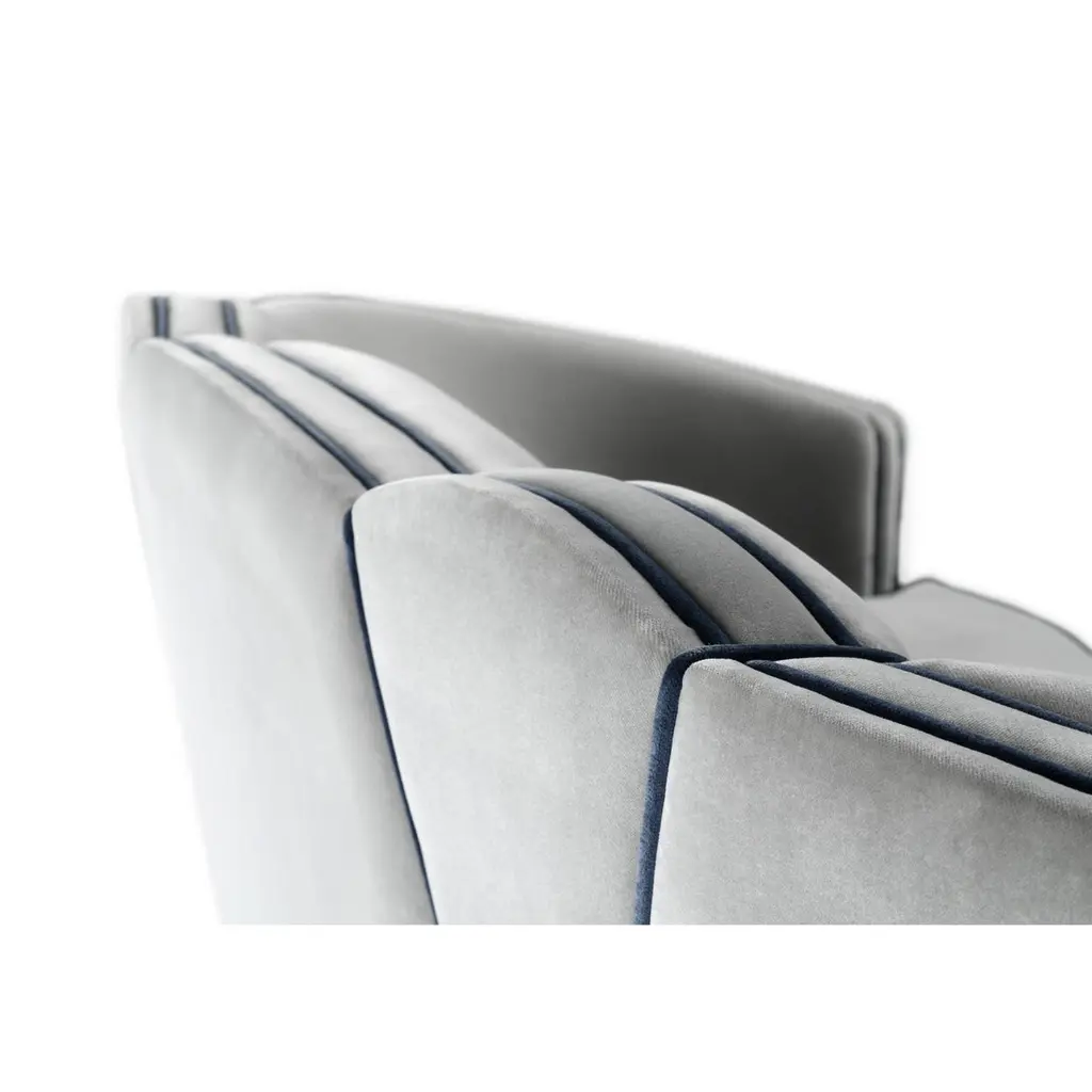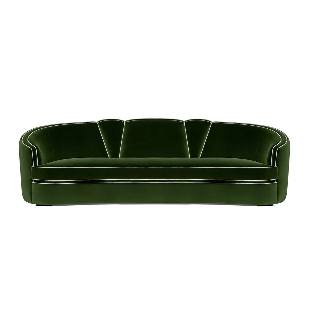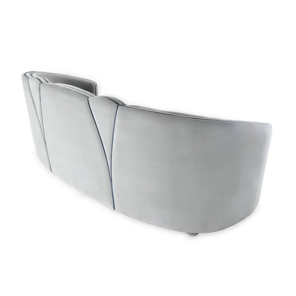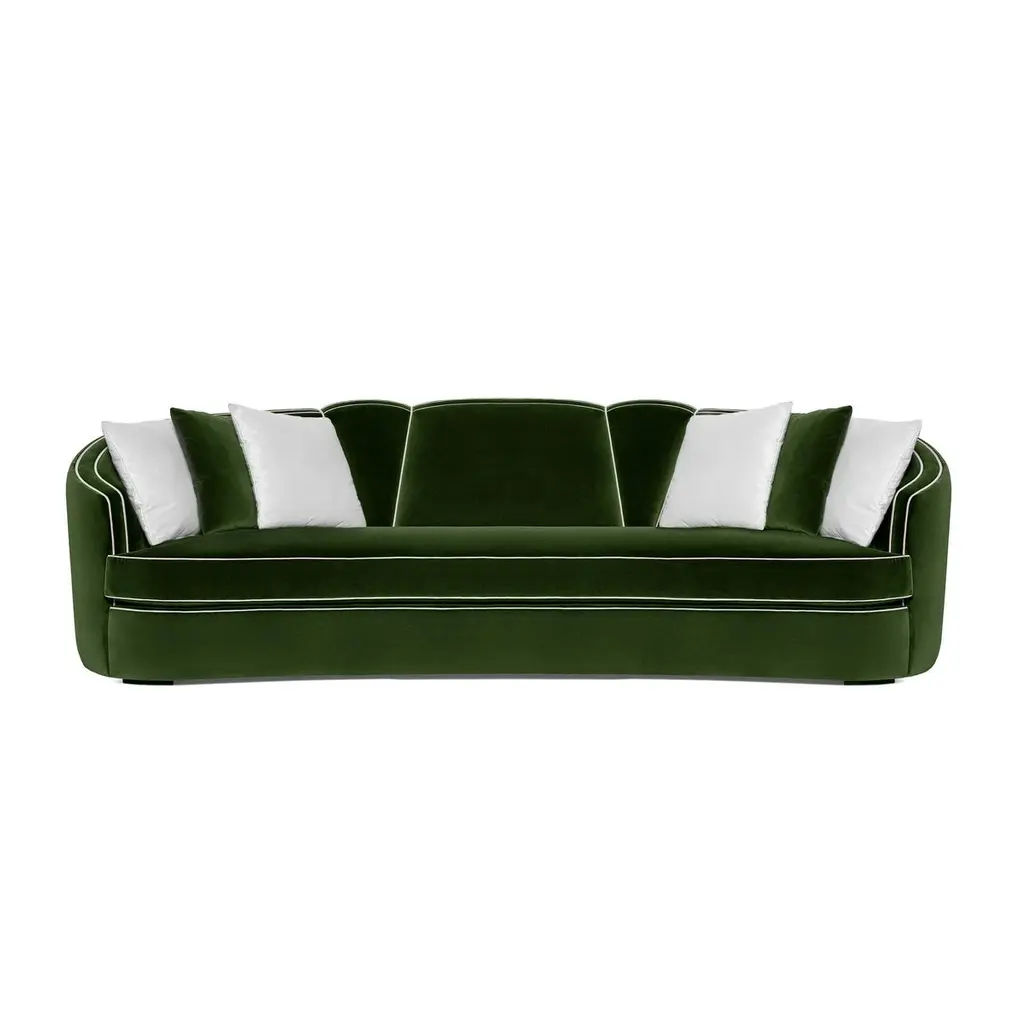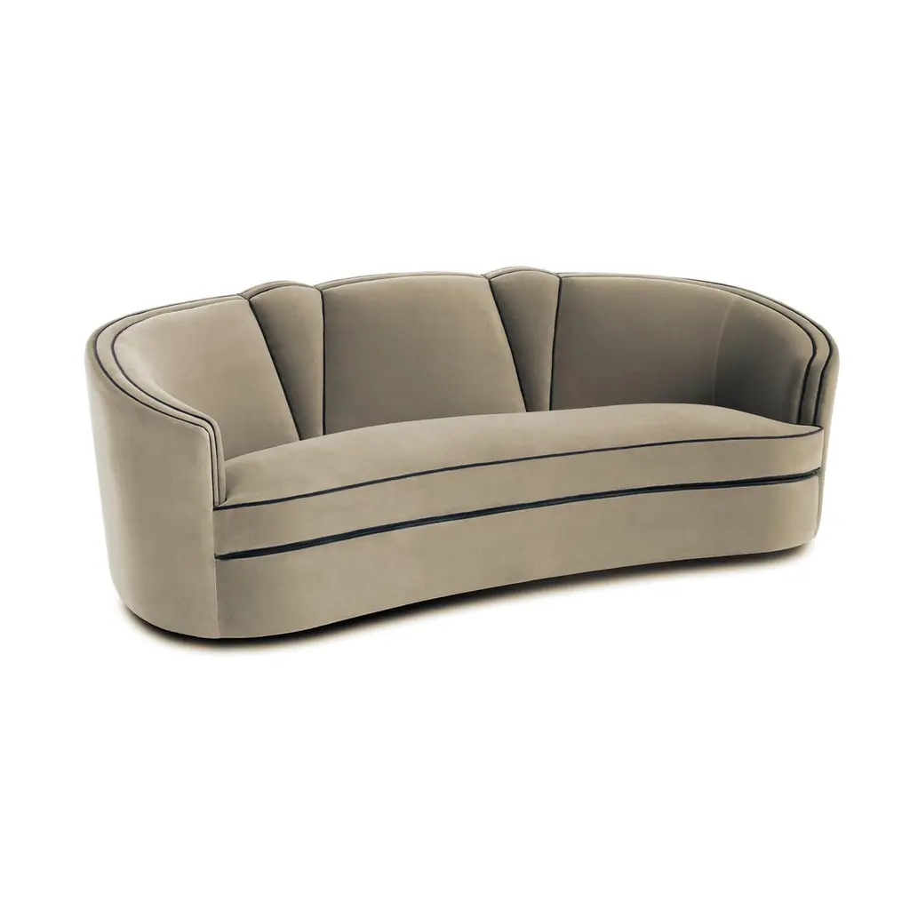 This sofa features a wonderfully elegant fan-shaped motif, with its accentuated curvy lines with decadent and lavish finish. The feminine curves are ravishingly enhanced by the different colored toned piping.Upholstery: velvet Feet: Upholstered with velvetHandmade in Europe.Please contact us if you have any questions about customization and pricing. We will be glad to check with the factory’s technical team if sizes, finishes, and colors can be customized. We do our best to expedite production and to ship and deliver product within the listed lead time, however current lead times might be longer due to global shipping backlog and delays. These delays are out of our control and cannot be a reason to cancel an order.Our pricing includes all costs for international shipping to the U.S., as well as duties and customs clearance fees. Please be aware that local delivery within the U.S. is not included. We offer white glove, front door, and warehouse delivery options. For shipments outside the U.S., kindly reach out to us for a detailed quote.