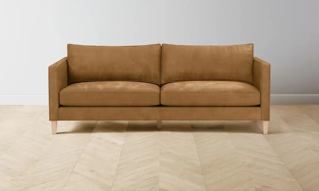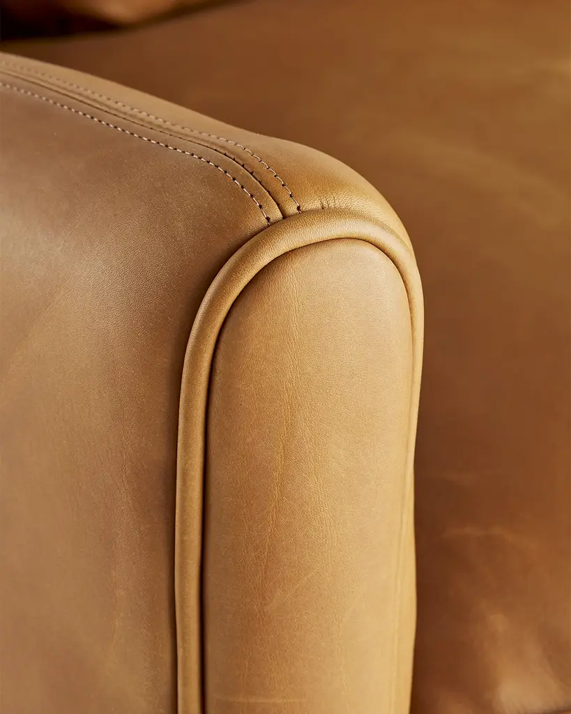 The inspiration for this sofa comes from a vintage-style Parisian find, adored for its unique shape and traditional styling. Though slightly updated, it stays true to the fanciful air of its predecessor, with welting details that accentuate the curves. Handcrafted of leather and wood Approx. 80.5”W x 34"D x 30"T Seat width, 69" Seat depth, 23" Seat height, 20" Made in USA Weight, 120.0lbs Boxed weight, approximately 160.0lbs Shipping Direct from Vendor, usually ships within 7 business days. About Arteriors: For more than 30 years, Arteriors' pursuit of extraordinary product design, impeccable style, and artisanal quality craftsmanship have built their foundation as a premier resource within the lighting, furniture, wall décor, and decorative accessory categories. Arteriors continues to evolve their product offering, forming objects of perfect proportion and scale, resulting in bold interiors, influenced by art, architecture, and fashion. Every design is a unique statement of their commitment to bring art to every story, and a story to every interior.
