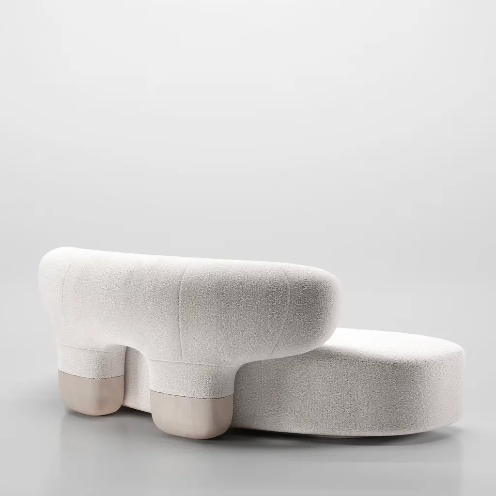 The Asawa 240 Sofa by Artefatto Design Studio is upholstered in Special Bouclé Pearl Bush fabric, giving it a soft, luxurious texture. Its curved seat design ensures the sofa stands slightly away from the wall, creating a central focal point in any room. Available in different seat sizes and finishes. Asawa blends artistic form with comfort.