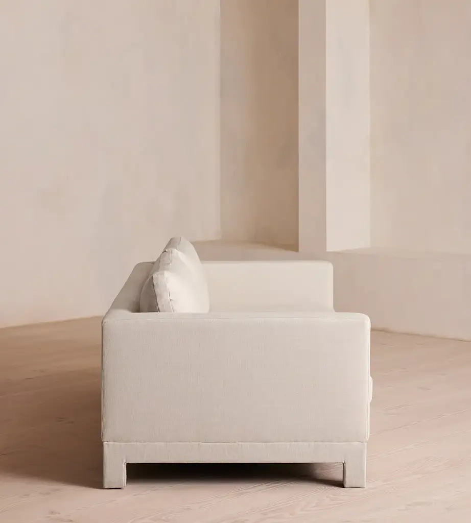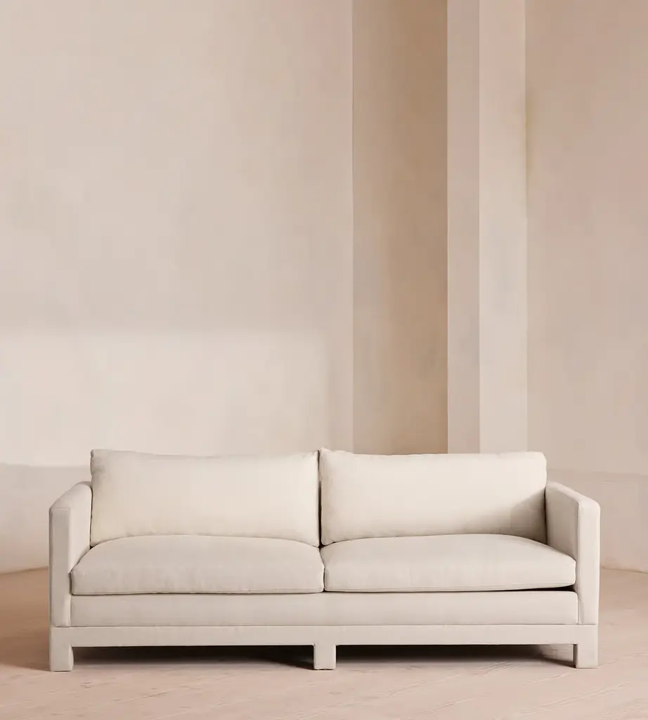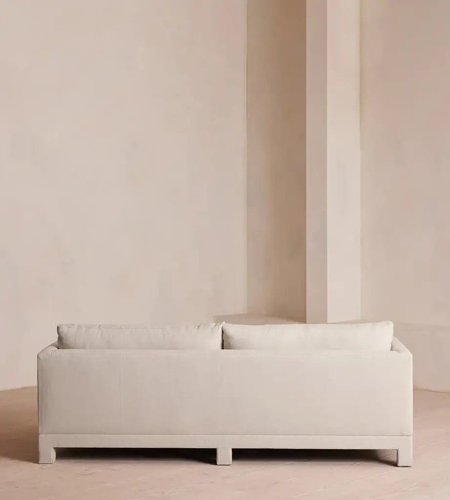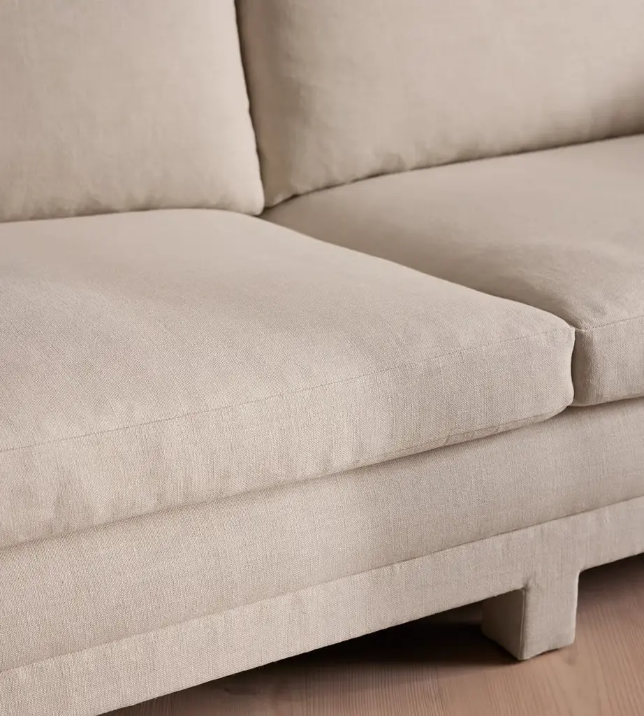 Our versatile Ashford sofa is made to suit a variety of living room interiors. Referencing the cosy seating areas of DUMBO House in Brooklyn, this three-seater style sits on beech legs and is fully upholstered in linen with a comfortable, deep seat that's great for kicking off your shoes and relaxing. Angular, structured arms lend a contemporary twist to this classic sofa design.