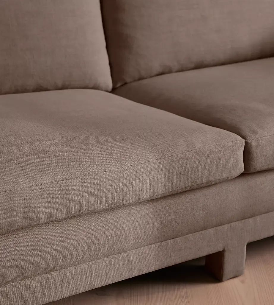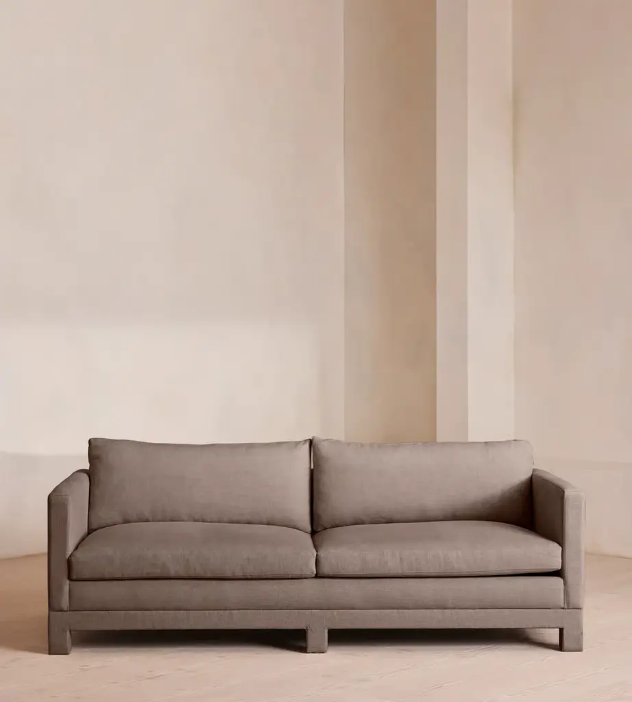Our versatile Ashford sofa is made to suit a variety of living room interiors. Referencing the cosy seating areas of DUMBO House in Brooklyn, this three-seater style sits on beech legs and is fully upholstered in linen with a comfortable, deep seat that's great for kicking off your shoes and relaxing. Angular, structured arms lend a contemporary twist to this classic sofa design.
