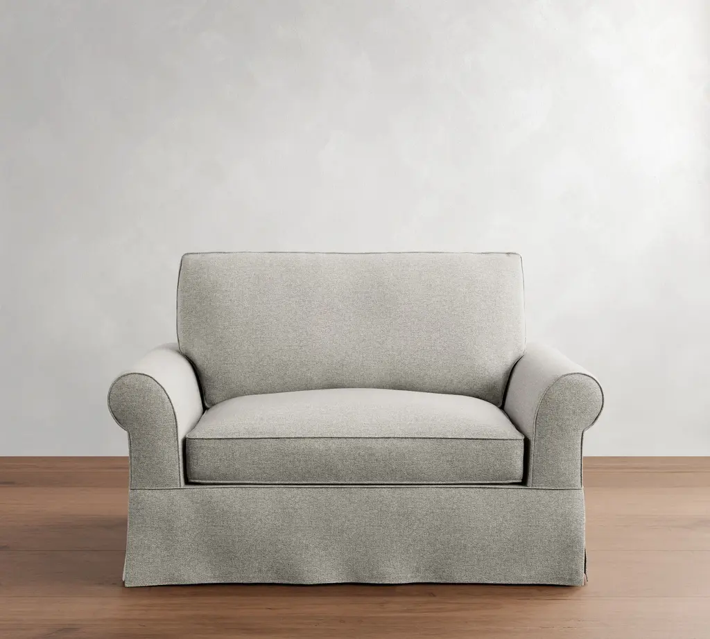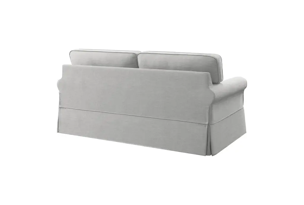 Ashton Fog Grey Fabric 77" Skirted Sofa | Rolled Arms | Loose Reversible Back