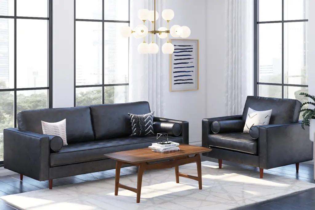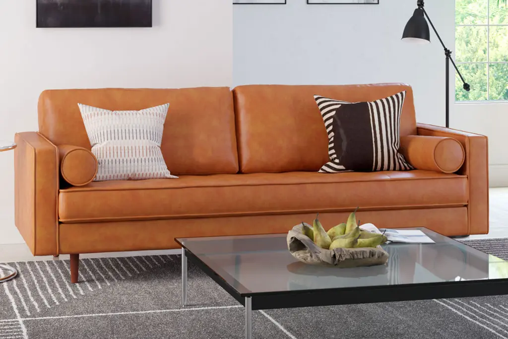 Available in vintage tan or vintage black, the Ashton Vintage Leather Sofa by Inmod boasts classic modern style. A streamlined silhouette features a single seat cushion and two individual back cushions that provide you and your guests with exceptional comfort. Matching round bolster pillows add extra style and comfort, while the walnut stained legs provide support and stability. The Ashton Vintage Leather Sofa instantly infuses exceptional design and luxury to your space and becomes the focal point of your modern decor.