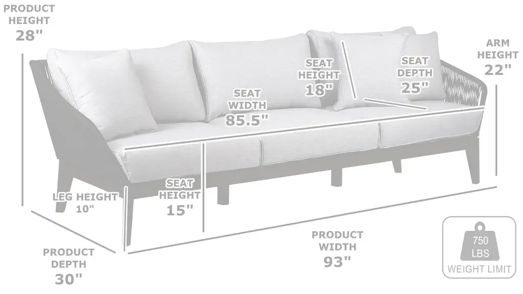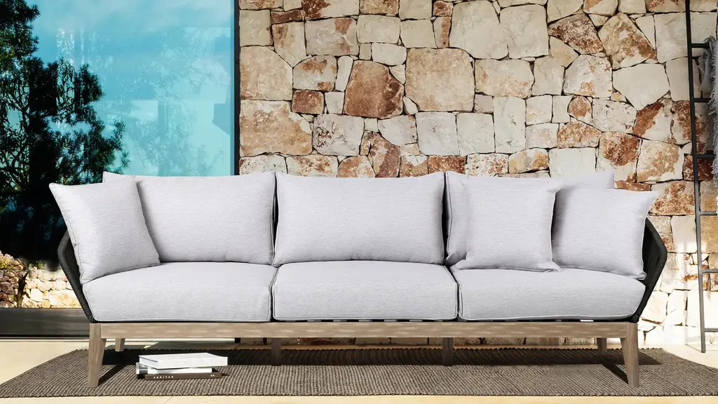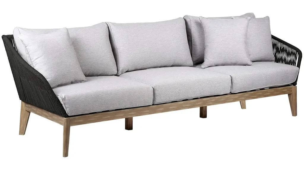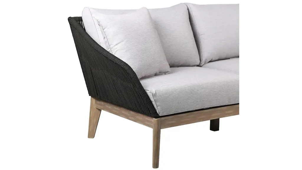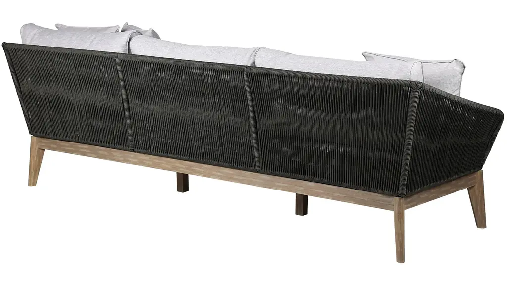 The Athos Outdoor Sofa brings striking style and sophistication to your patio space. Its standout feature is a beautifully detailed frame wrapped in durable, intricately woven rope -offering a fresh, modern twist on traditional outdoor furniture. Built to endure the elements while turning heads, this design elevates the visual appeal and longevity of your outdoor setup. Both the back and armrests are wrapped in strong regatta rope, showcasing a distinctive crosshatch weave that adds texture and visual interest. The frame is crafted from eucalyptus wood, a fast-growing, renewable resource that makes this piece an environmentally conscious choice without compromising on strength or beauty.
