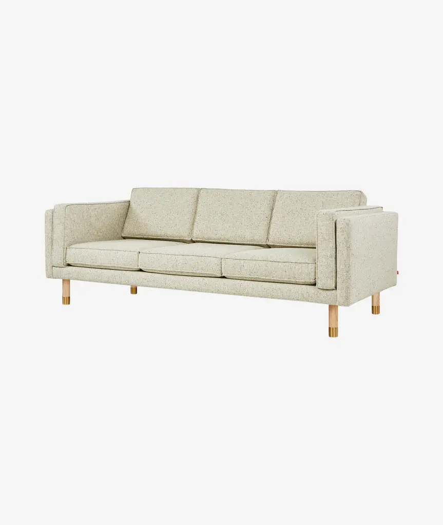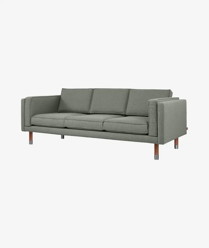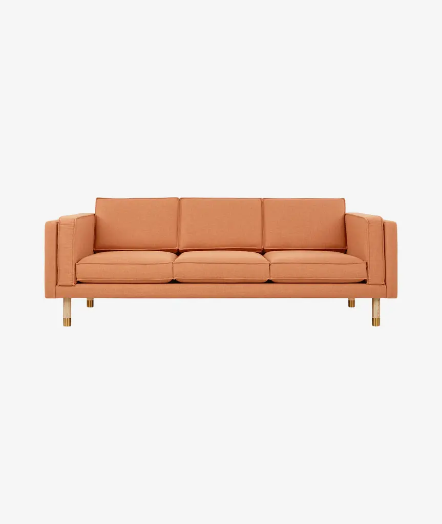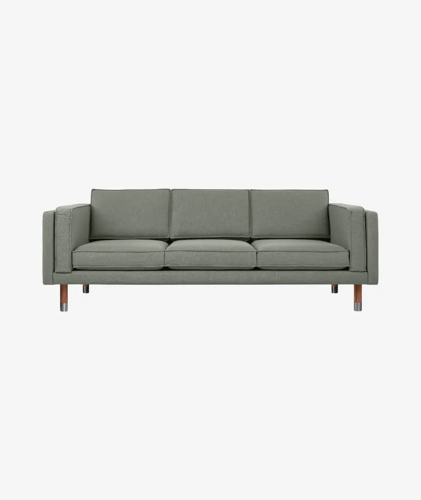 The Augusta is a meticulously designed 3-over-3 club sofa that nods to classic Modernist archetypes while looking to the next Mid-century with fresh details, finishes and sustainable materials. Structured cushions, with French seam detailing, provide comfort and reinforce the pedigreed style. Solid wood legs include a metal detail to add understated sophistication to the design. Augusta’s frame and legs are constructed with durable, kiln-dried FSC®-Certified hardwood, in support of responsible forest management.