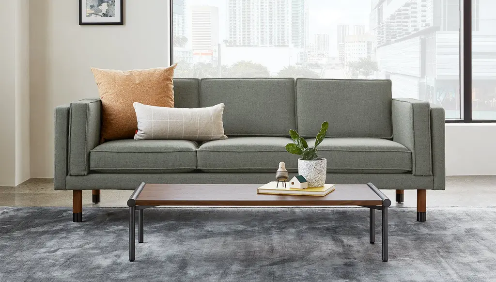 The Augusta is a meticulously designed 3-over-3 club sofa that nods to classic Modernist archetypes while looking to the next Mid-century with fresh details, finishes and sustainable materials. Structured cushions, with French seam detailing, provide comfort and reinforce the pedigreed style. Solid wood legs include a metal detail to add understated sophistication to the design. Augusta’s frame and legs are constructed with durable, kiln-dried FSC®-Certified hardwood, in support of responsible forest management.