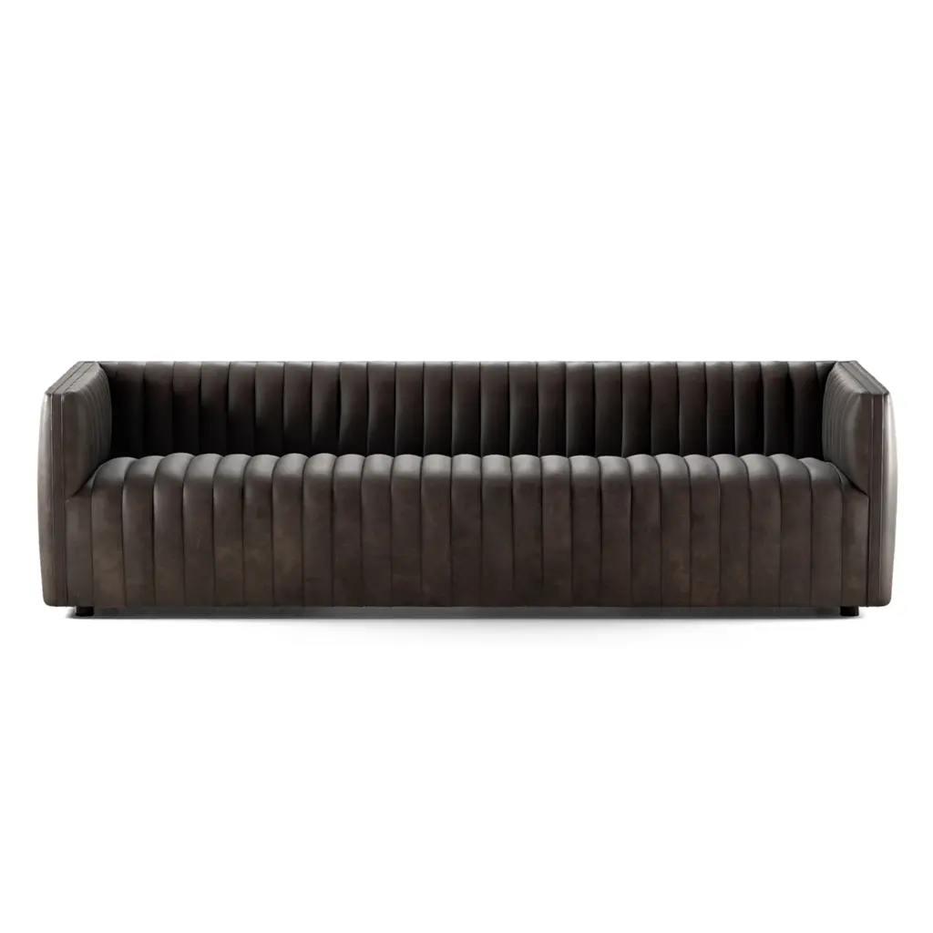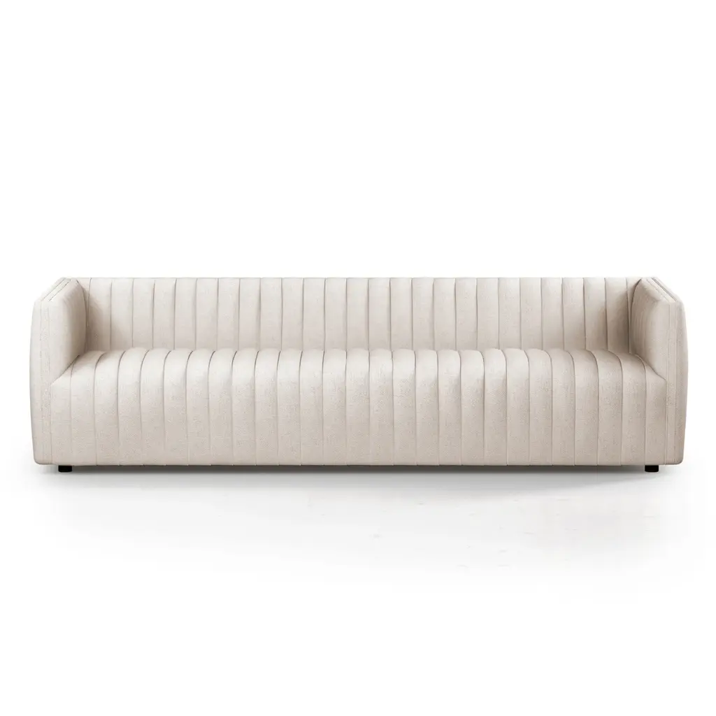 Experience ultimate comfort and style with the Augustine Sofa from Four Hands. The elegant channeled design and rich upholstery options create a clean and luxurious look. The performance fabrics are built to withstand spills, stains, and high traffic, guaranteeing long-term durability and comfort, while the leather options provide an elevated, almost vintage look perfect for a living room or office space. Highlights