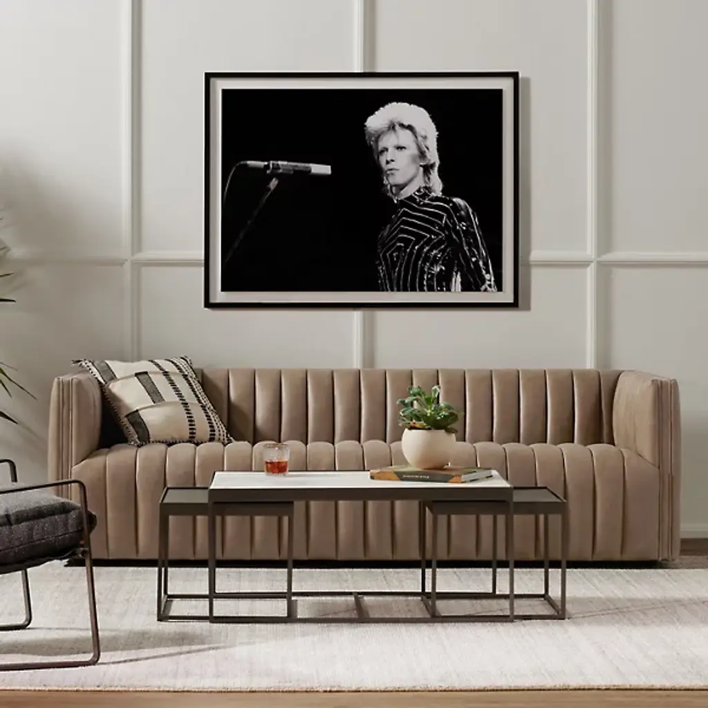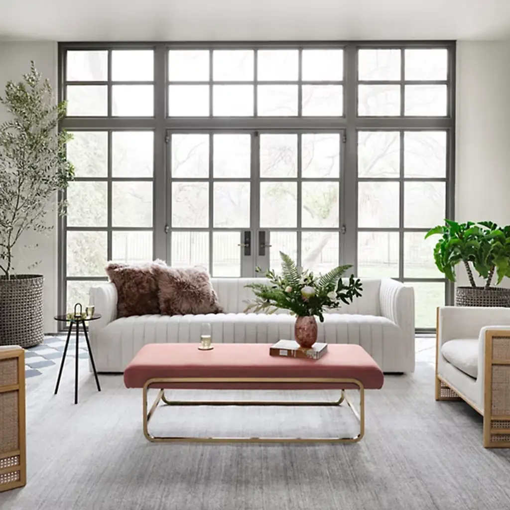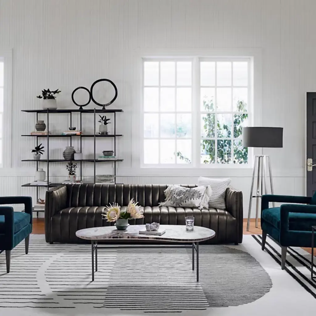 The Augustine Sofa from Four Hands redefines comfort with its dramatically channeled design. Upholstered in a luxurious dover crescent linen blend, this sofa offers a crisp, clean aesthetic while providing an incredibly sumptuous seating experience. The fabric's viscose, polyester, and flax composition creates a durable yet soft texture. Beneath its stylish exterior, this piece of furniture features a sturdy poplar plywood frame and high-density foam cushioning, ensuring long-lasting support.