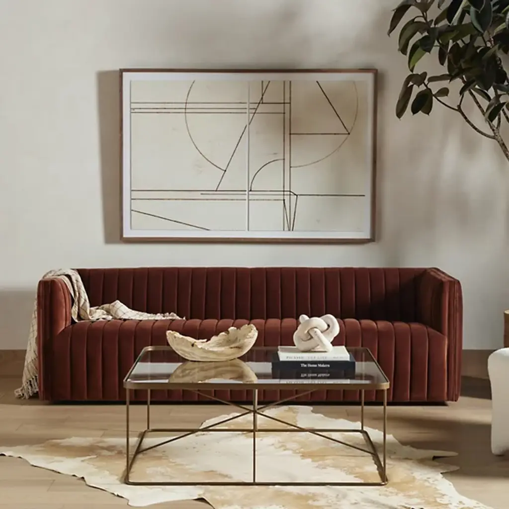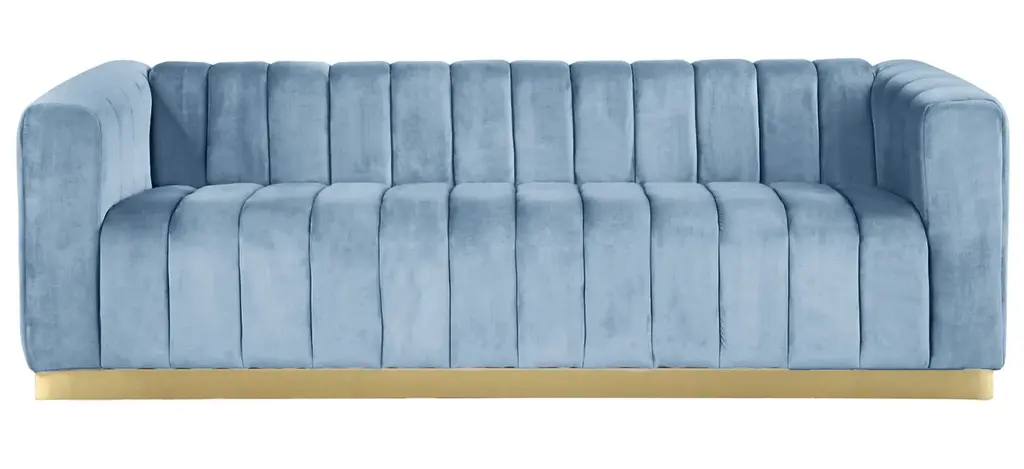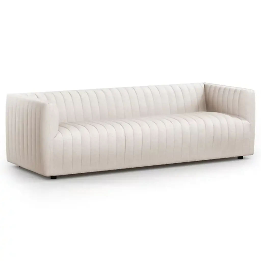 The Augustine Sofa from Four Hands redefines comfort with its dramatically channeled design. Upholstered in a luxurious dover crescent linen blend, this sofa offers a crisp, clean aesthetic while providing an incredibly sumptuous seating experience. The fabric's viscose, polyester, and flax composition creates a durable yet soft texture. Beneath its stylish exterior, this piece of furniture features a sturdy poplar plywood frame and high-density foam cushioning, ensuring long-lasting support.