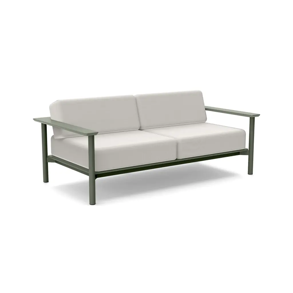 Sit back and relax in luxury with Loll Designs's Aurora Outdoor Left Arm Sofa. Its durable stainless-steel frame with rust-proof powder coat ensures a solid foundation, while plush cushions provide ultimate comfort. With a taller seat height for easy seating and standing, this elegant sofa is the perfect addition to any outdoor space. Pair with the Aurora Corner Lounge for ultimate relaxation. Highlights