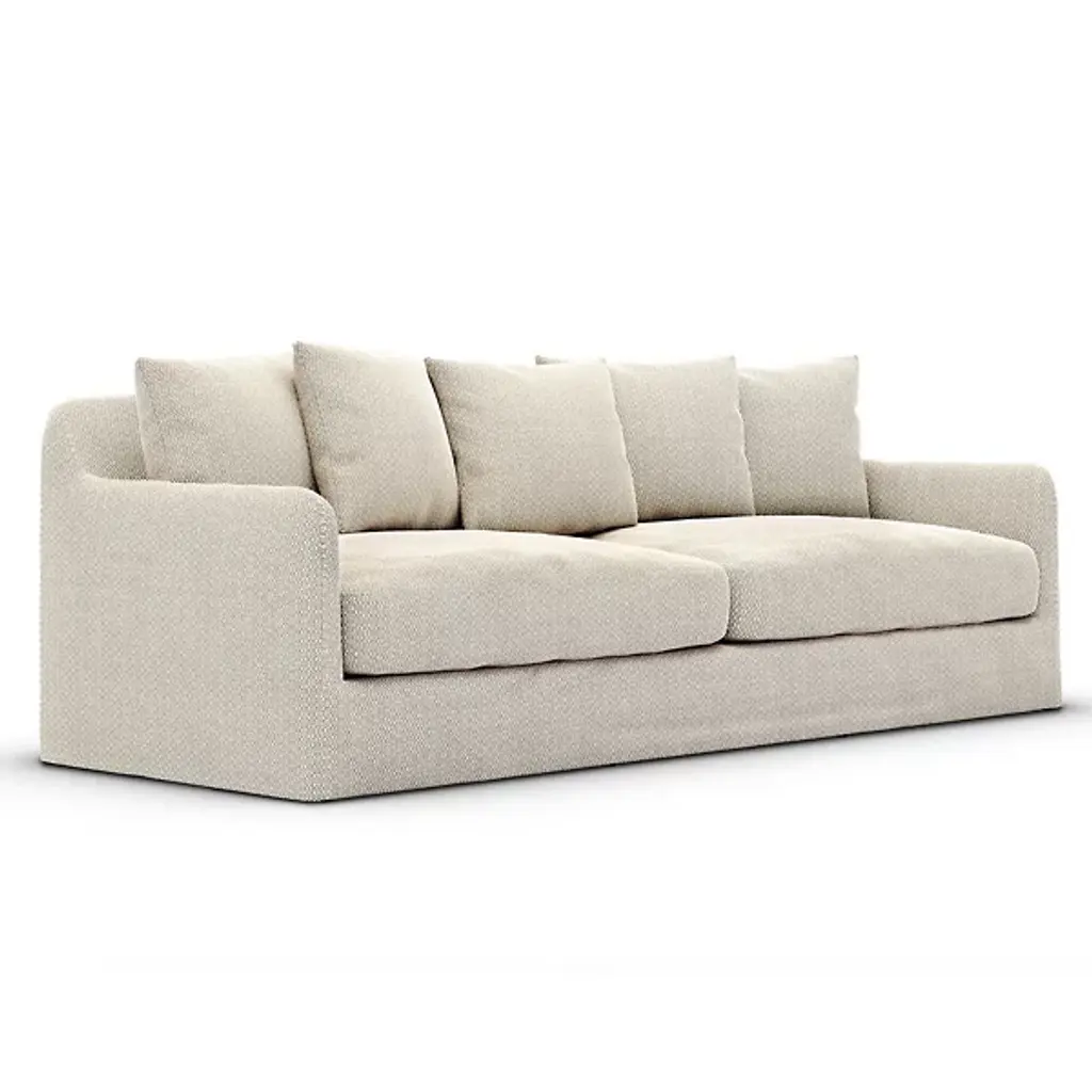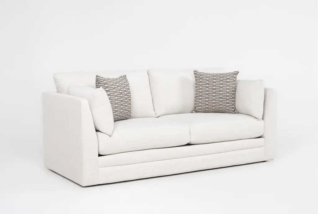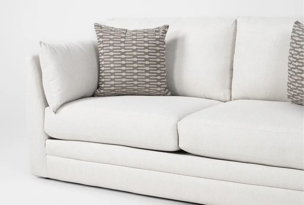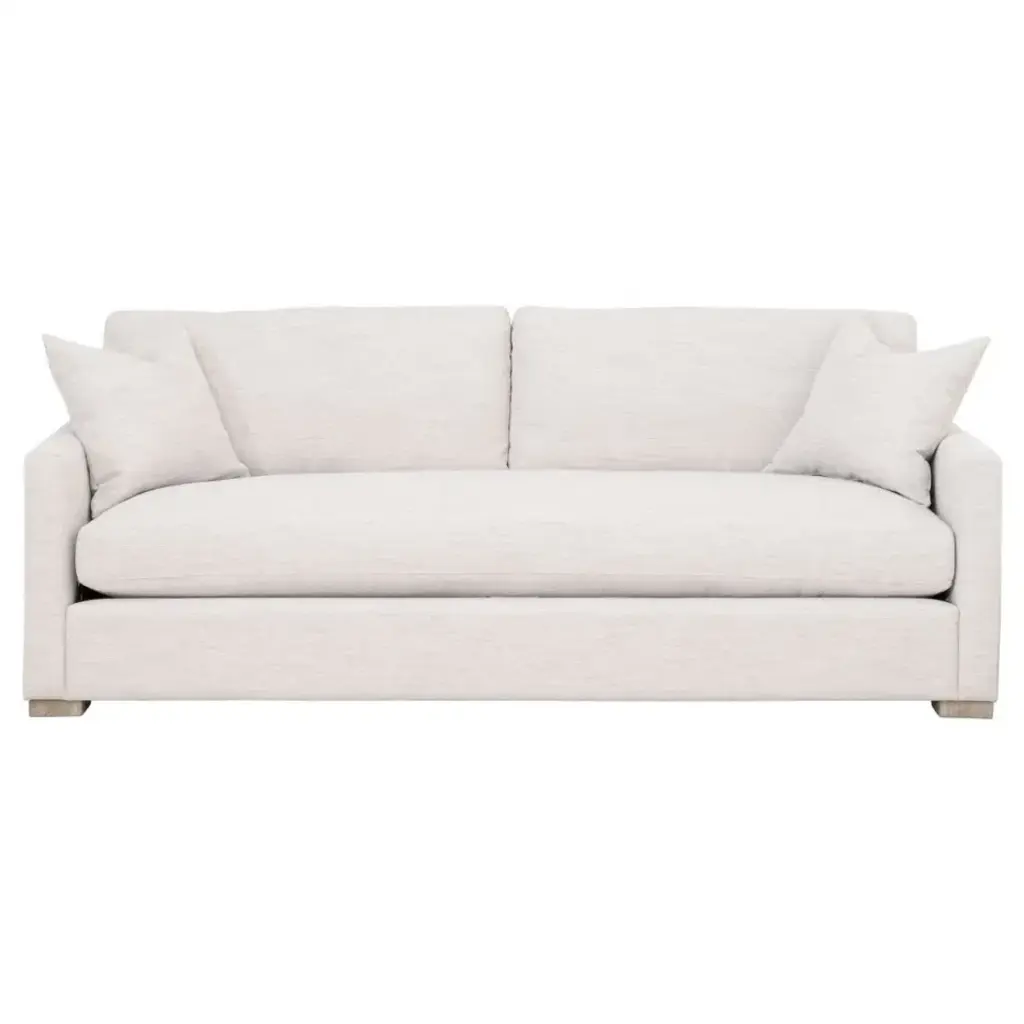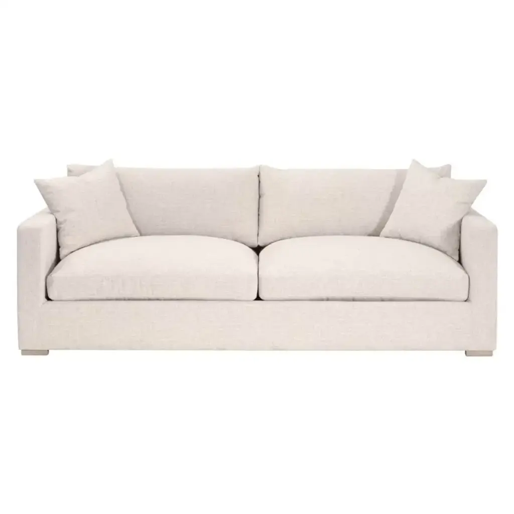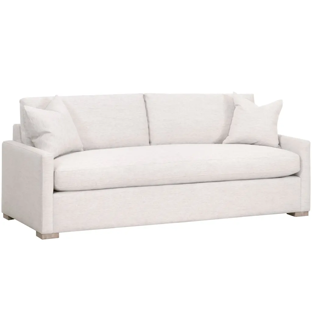 The Austen Foam II Beige 86" Condo Sofa offers a comfortable and stylish seating solution for your living room. This casual sofa is upholstered in 100% polypropylene fabric, ensuring durability and ease of maintenance. With its removable cushions and flared arms, this sofa combines functionality with a soft, neutral color palette that complements any decor.
