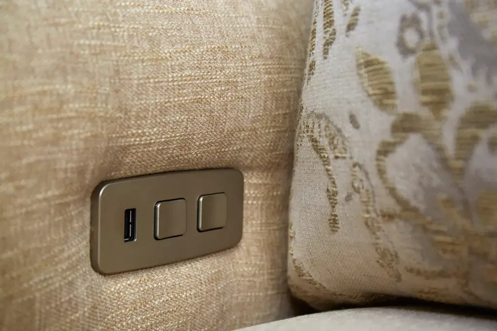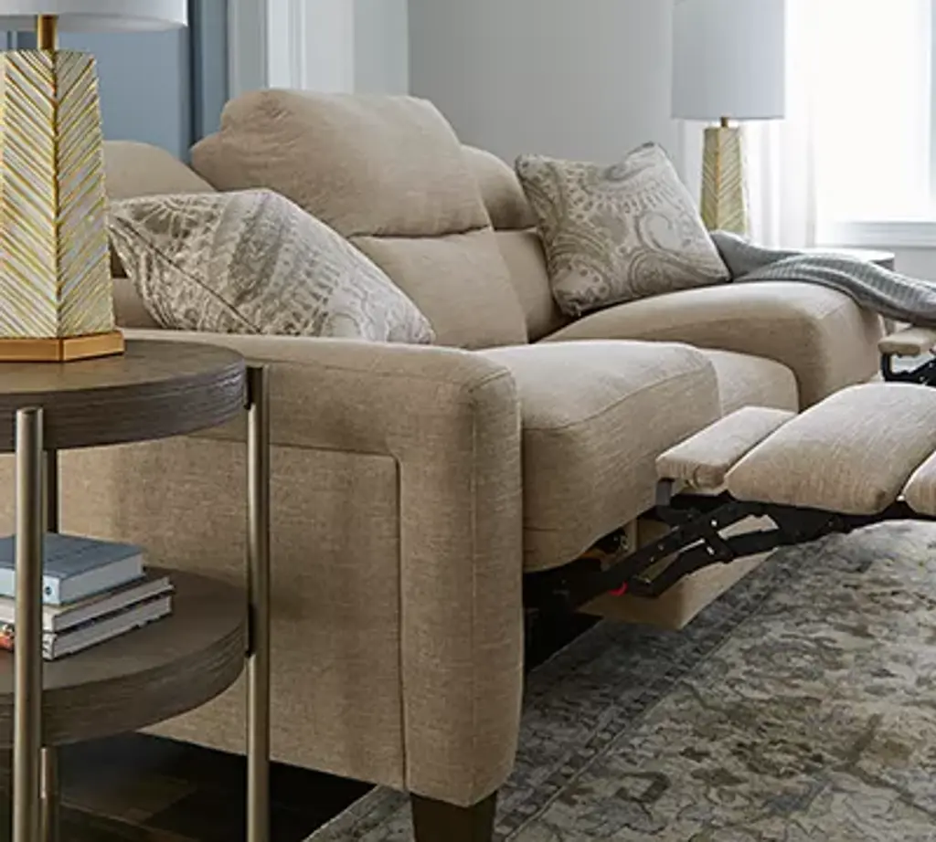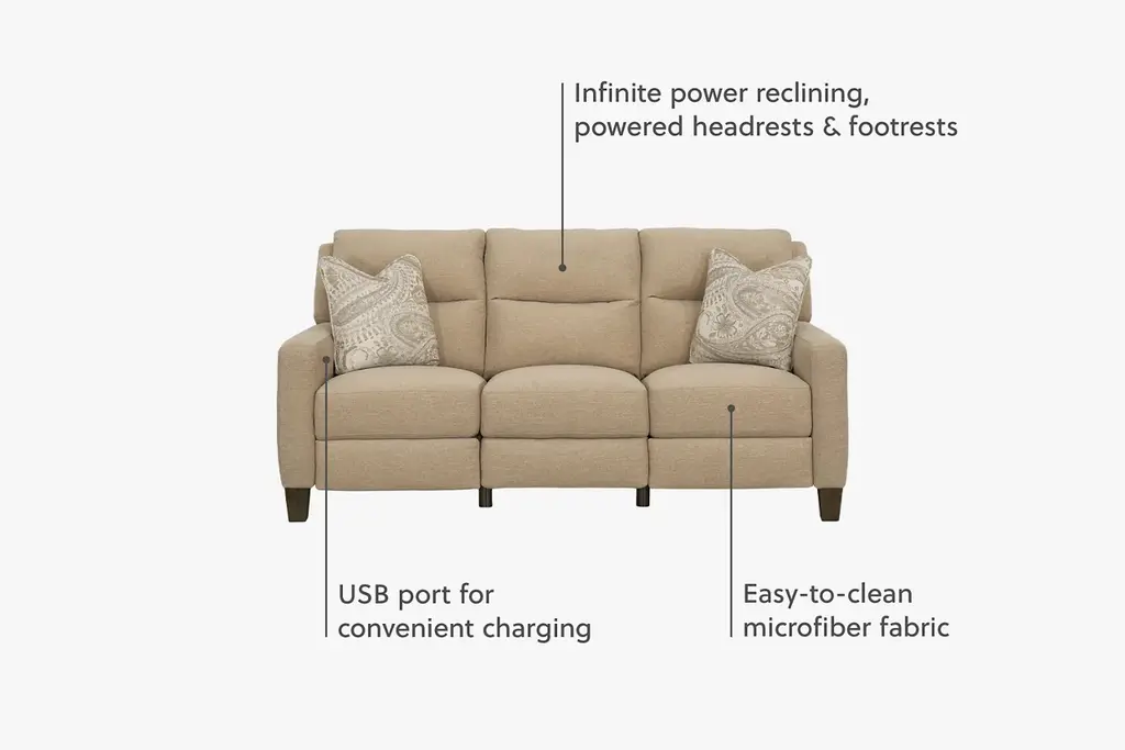 Experience cloud-like comfort with our Ava sofa. This piece boasts a plush fabric with high-density cushions, and the infinite power recline with the powered headrests and footrests help you find your favorite position for relaxation.