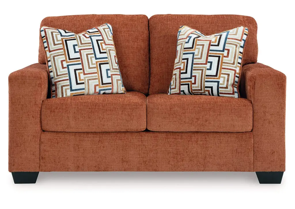 Looking to make a bold statement with color? Liven up your living room with the Aviemore sofa. Its trend-right burnt orange upholstery adds a playful pop of color to your decor. Bold and eclectic accent pillows complete the look. Pairing posh style with everyday comfort, this piece is a welcome addition to contemporary spaces. Weight 128.000 lbs. (57.6kgs.)