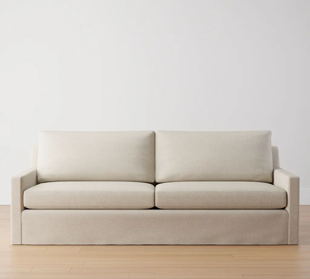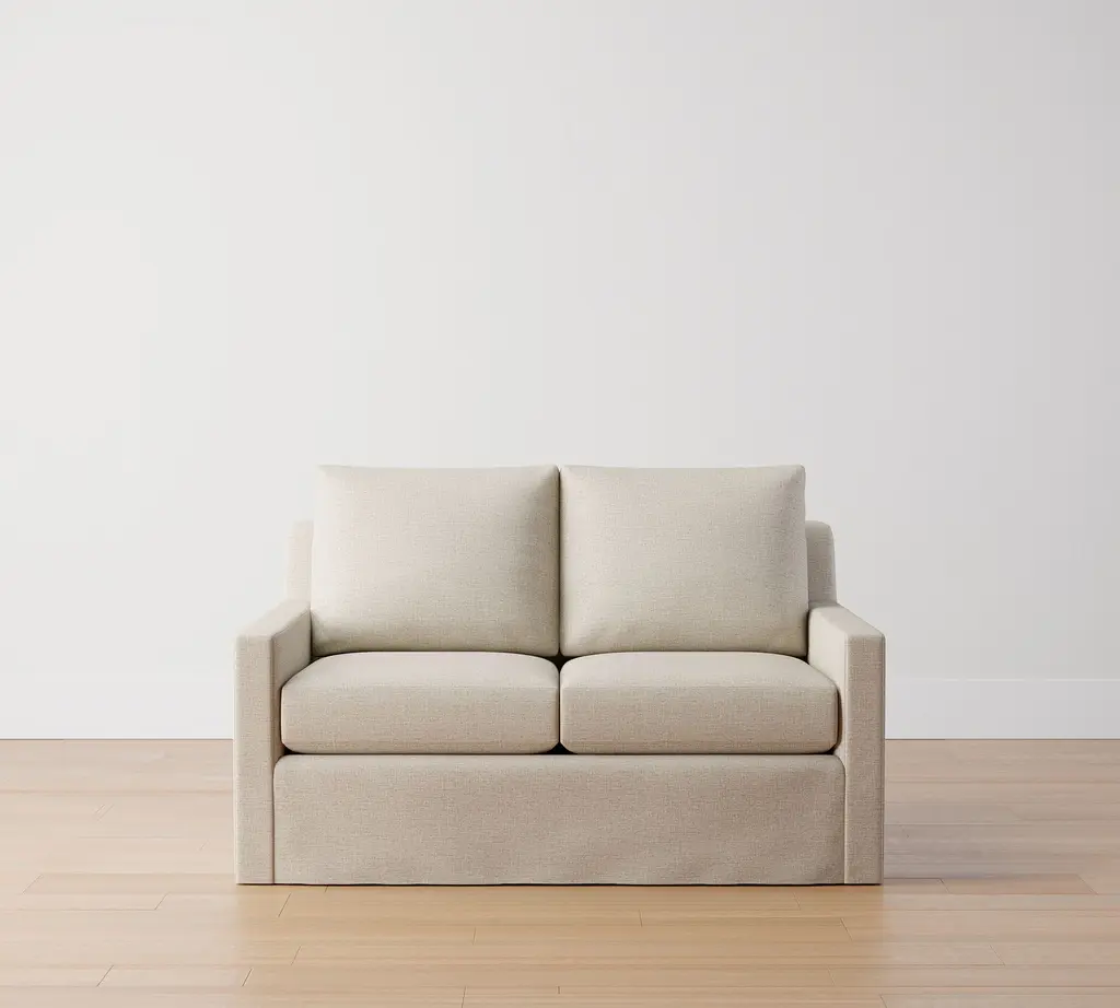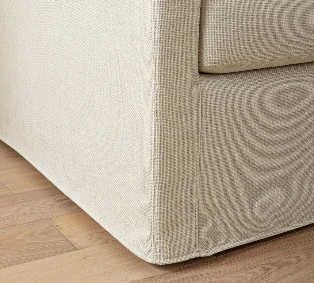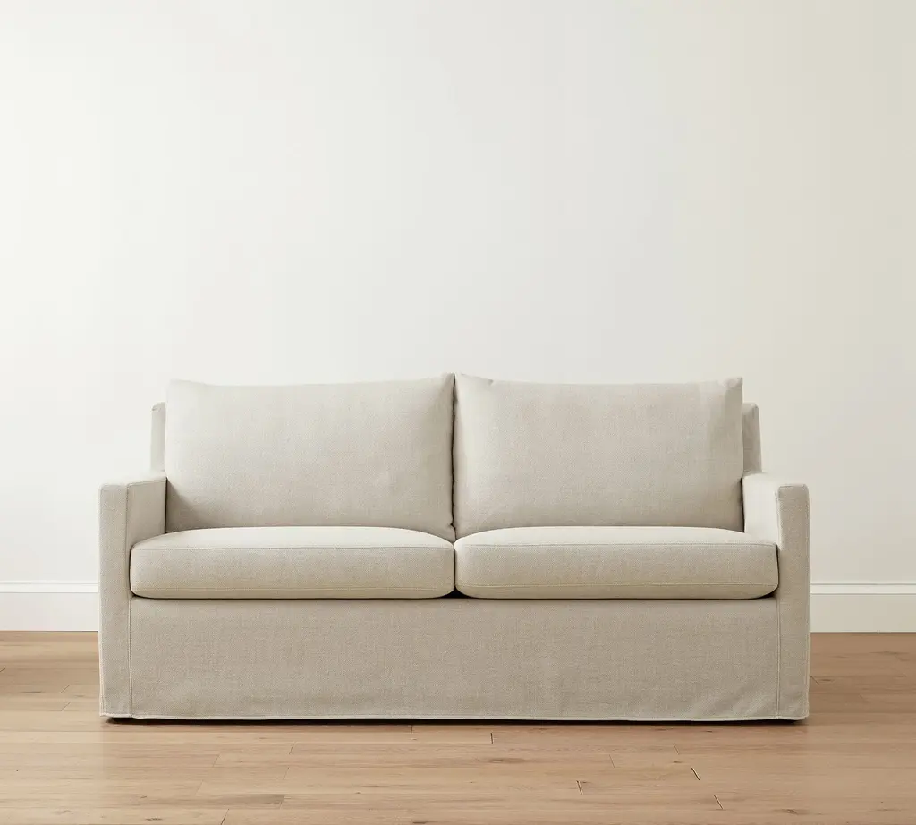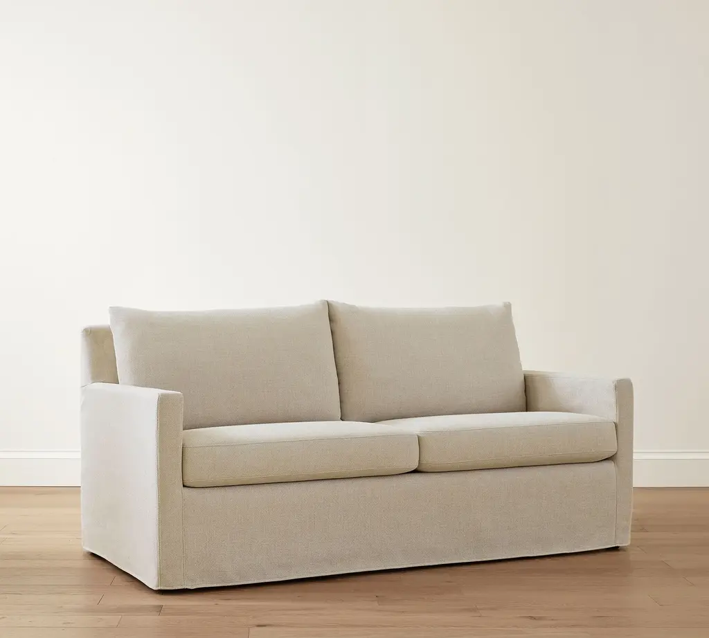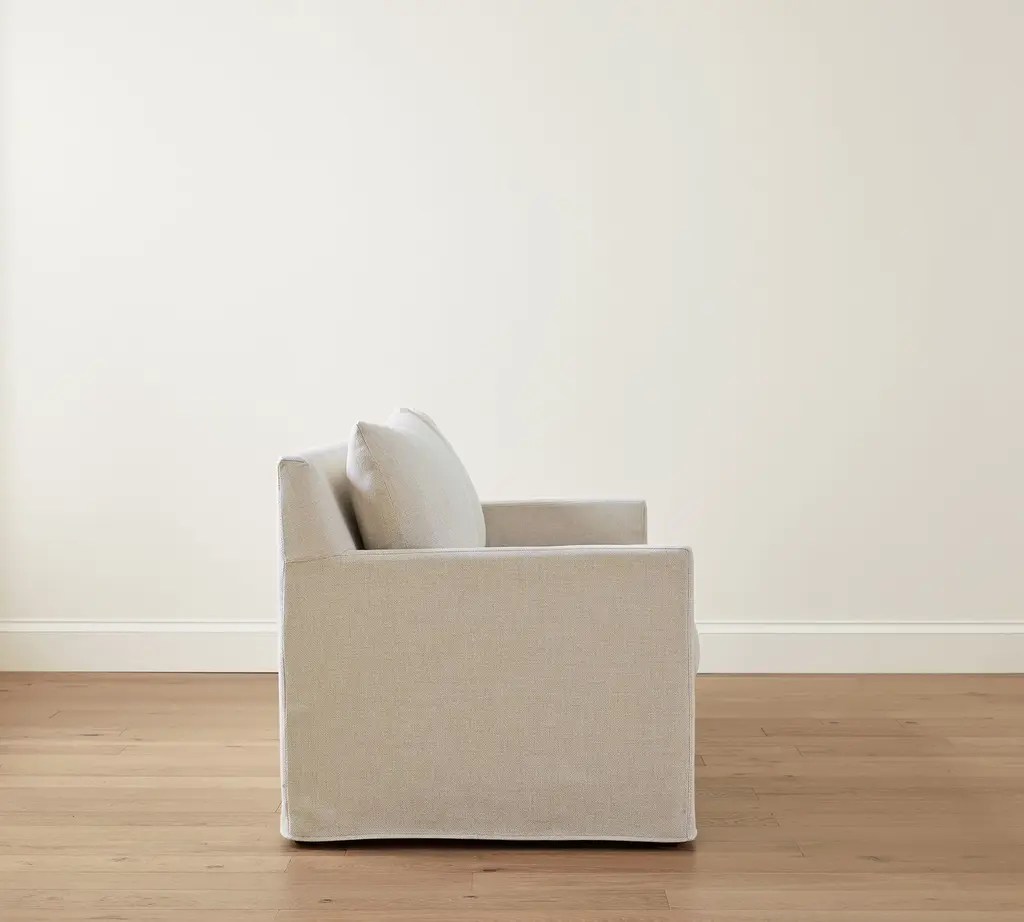 Minimalist style with a slim silhouette, Ayden is pure comfort. The back pillows are perfectly plush, easily making this your new favorite spot in the house. It has a transitional look with modern square arms and comes complete with a tailored slipcover for easy laundering.