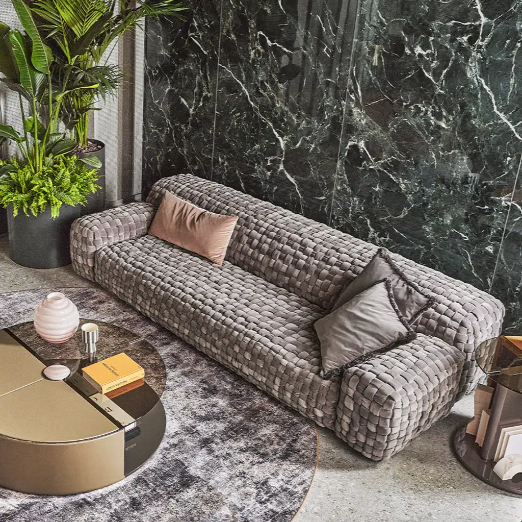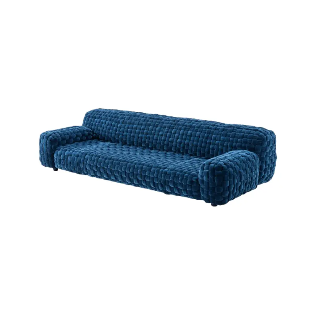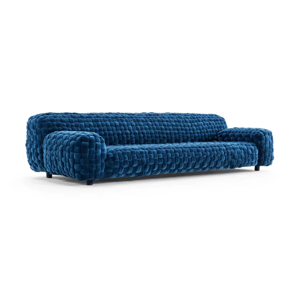 A striking addition to any contemporary living space, the Azul Sofa from Turri is a study in relaxed sophistication. Its generous proportions, plush handwoven upholstery, and sculptural form create a piece that invites both comfort and admiration. Designed with Turri’s meticulous attention to detail, the Azul Sofa elevates any living space with effortless luxury. Highlights