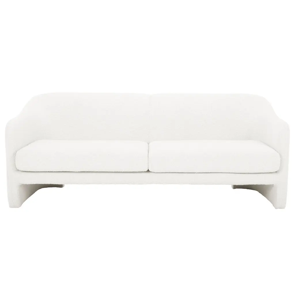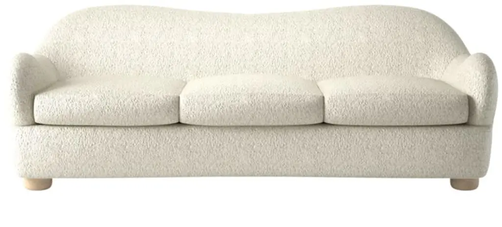 Boucle takes on cream-colored hues in loungeable sofa designed by Ross Cassidy. Bubbly in shape with rounded legs of solid bleached oak and an oversized silhouette made for spreading out. CB2 exclusive.