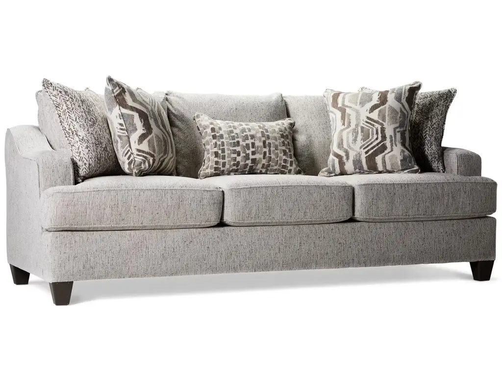 A stylish update to your living space, the Peak Living Backlund Sofa is the perfect spot to unwind. Upholstered in soft fabric with tonal welt trim, sloped track armrests, and supported by tapered wooden legs, this transitional-style sofa will make a luxurious addition to your living room. Includes five coordinating toss pillows for added comfort and style.