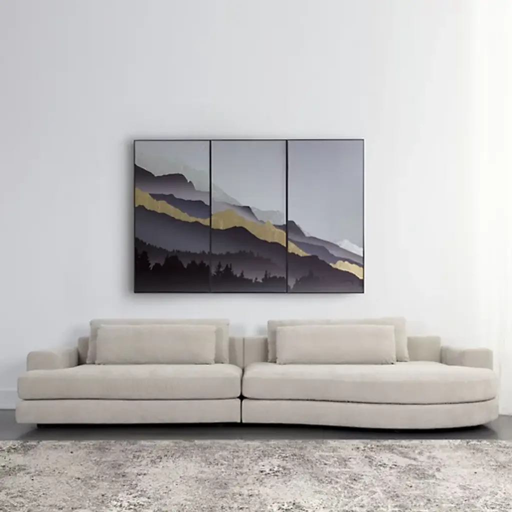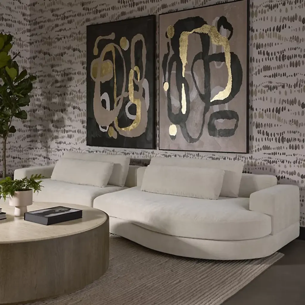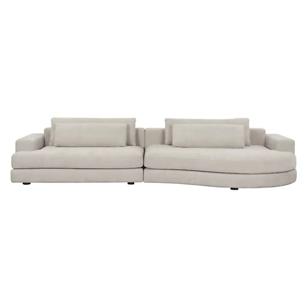 The Baela Sofa from Sunpan features gentle curves that wrap around the seated figure through soft, upholstered forms. The extended profile maintains relaxed proportions while removable seat cushions offer practical maintenance options. Rubberwood base construction provides hidden structural support beneath the fabric surfaces. Velcro and clip attachments allow cushion removal for cleaning or seasonal storage needs. The curved aesthetic softens interior spaces while the modular cushion system adapts to changing household requirements and usage patterns over time.