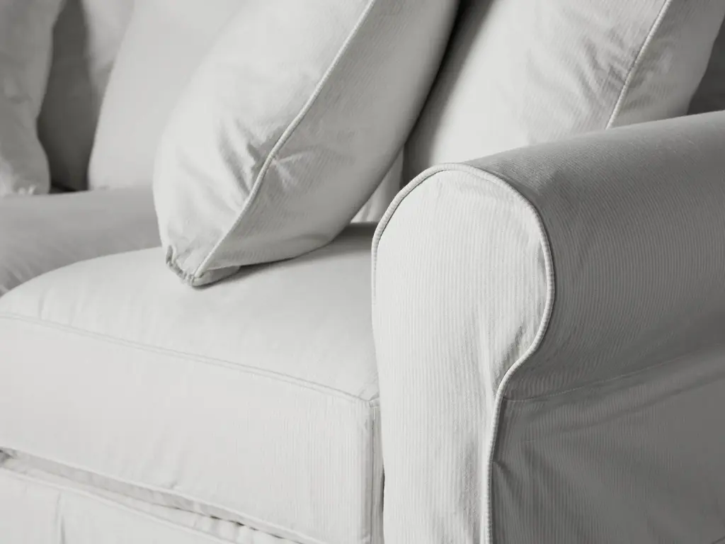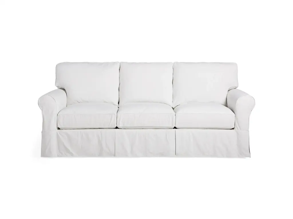 Available in a wide variety of sizes, shapes, and colors, our Baldwin Slipcovered Collection was designed with classically styled seating arrangements to frame an inviting living space. Every piece was craftsman-built by dedicated artisans in North Carolina, using durable, kiln-dried hardwood, which is padded with expertly fitted upholstery. Timeless silhouettes feature traditional, rolled arms and a skirted base. Tailored, machine-washable slipcovers—available in a large selection of colors and fabrics—are sewn by skilled seamstresses to ensure a perfect fit.