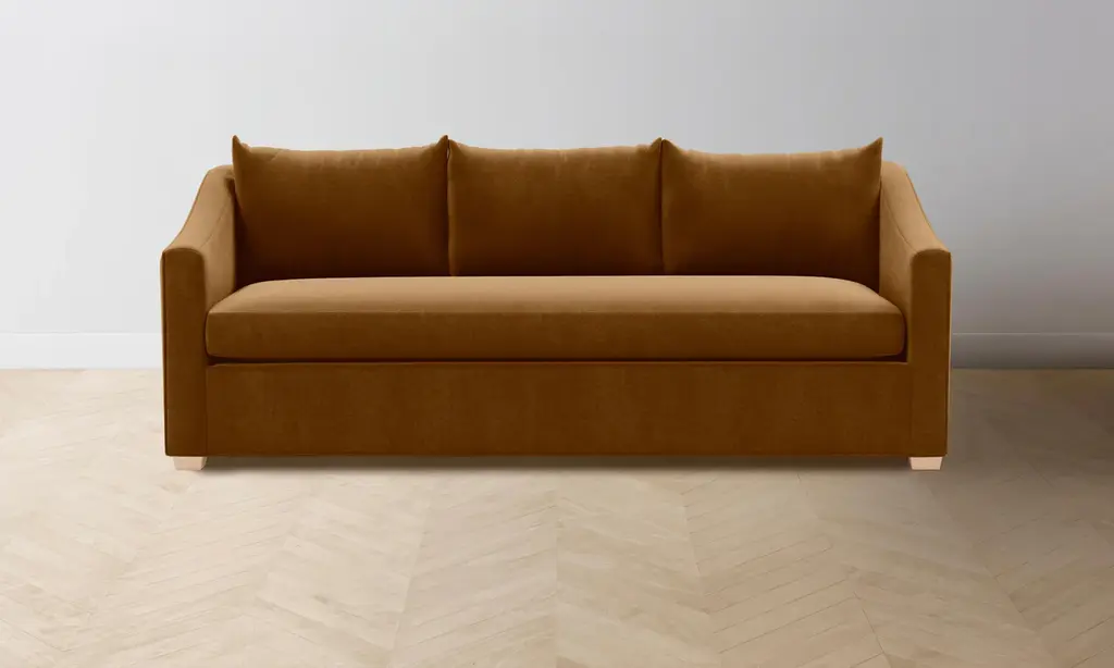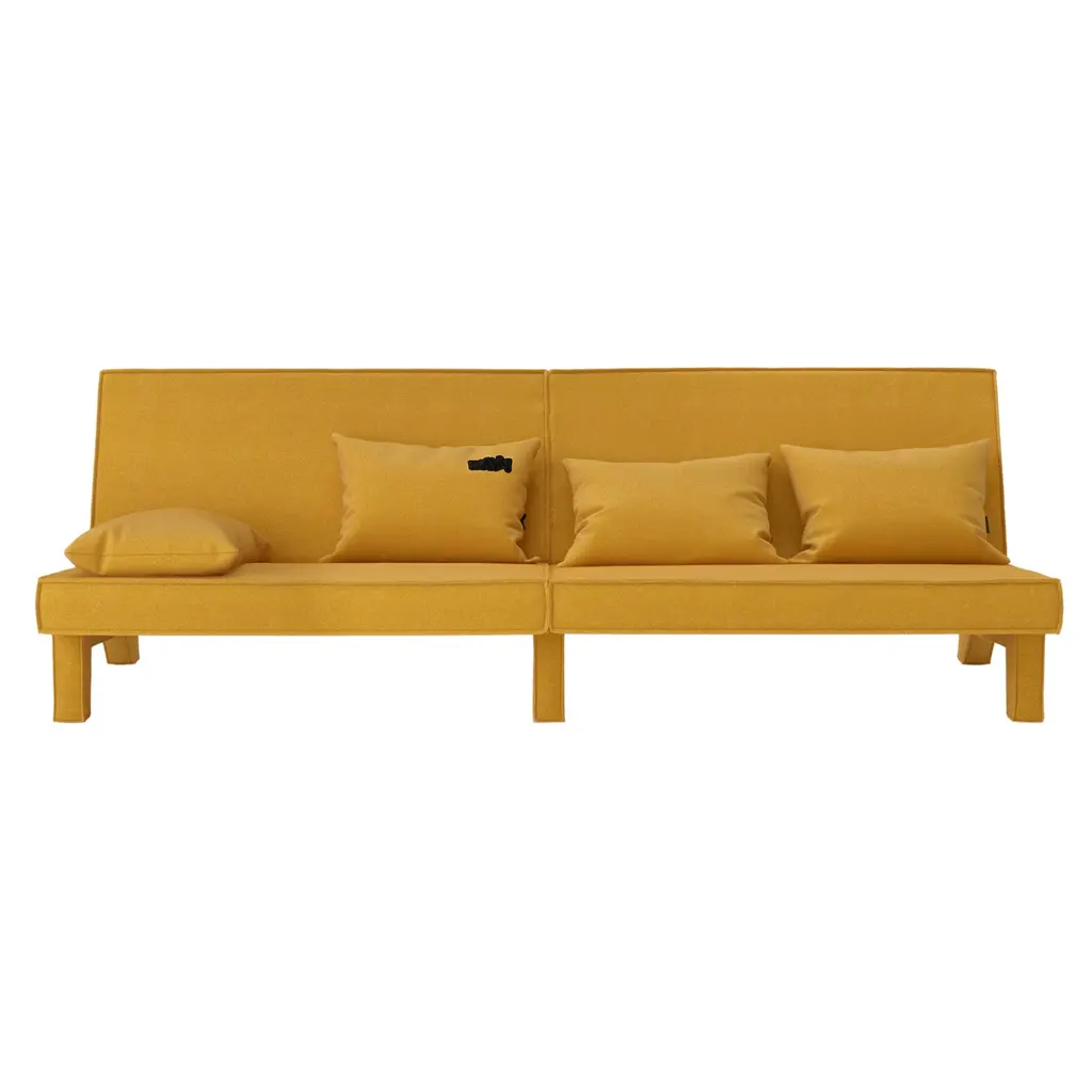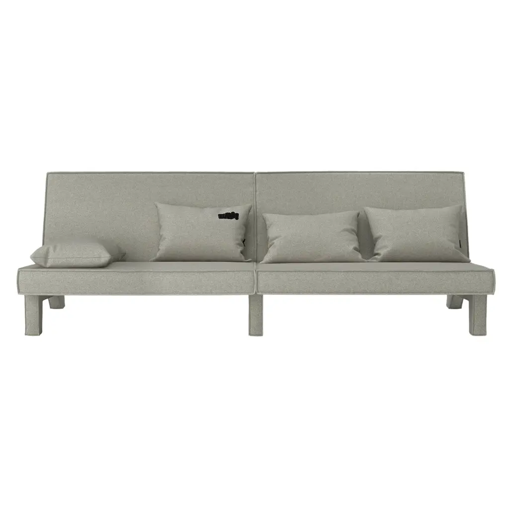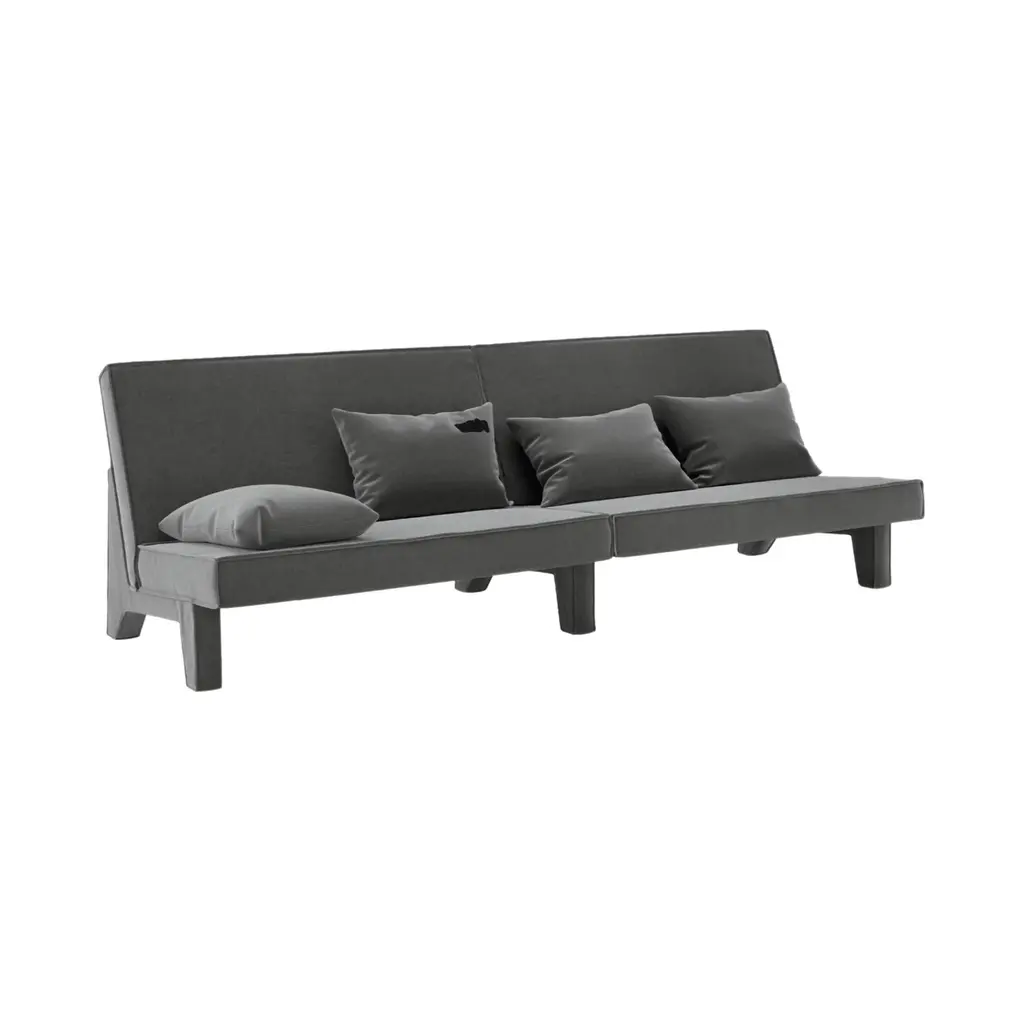 Just as the Pop movement stunned the art world, BAM! shakes up the idea of a sofa, here in an extended version that combines a pair of 2-seater sections. Massproductions co-founder and chief designer Chris Martin plays up the geometry of block-shaped cushions for the armless seat and back, filled with recycled goose and duck feathers (sterilized via high temperature without chemicals). Buttress-like legs come upholstered in the same material and one of the back cushions sports a black embroidered logo patch, a nod to the American artist Roy Lichenstein. BAM! is delivered in eco-smart flat packaging and easily assembled with few components.