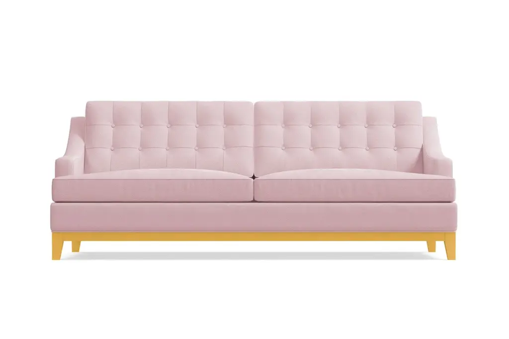 For plenty of posh style in a smaller space, go with the Bannister apartment size sofa from Apt2B. This sophisticated design features curved arms and button-tufted back cushions, giving the couch just a hint of vintage glamour. Despite looking rather elegant, this couch is still incredibly inviting thanks to ultra-plush cushions and a lovely wood base that adds warmth and charm. You'll also get to customize the color by picking from our selection of gorgeous fabrics and leg finishes. Once you've selected the specs, your sofa is crafted right here in the USA. We even throw in a limited lifetime warranty to give you the full VIP treatment. The Bannister sofa has style to spare, but it also fits neatly into tighter spaces. It comes it 60-inch and 69-inch lengths to help you find the ideal fit, whether you need seating in your studio apartment, your kids' playroom, your home office or your den.