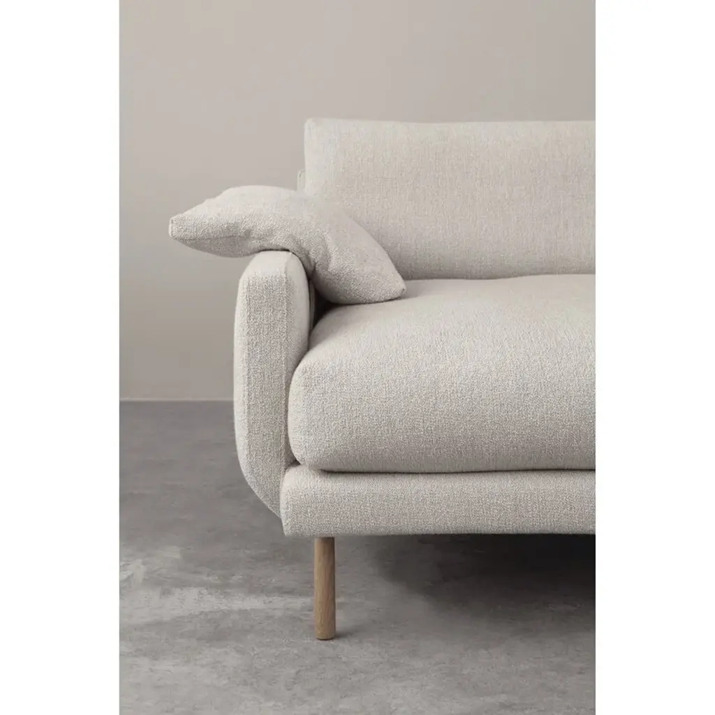 Interface’s Bebé sofa featuring a chaise longue invites instant relaxation. Designed by Aino Michelsen, the soft lines, slender features and deep seats of the Bebé sofa provide a pleasant setting for both relaxed sitting and socializing. Thin legs support the frame and the soft, cloud-like seat cushions filled with feathers, giving the Bebé sofa a light and airy look. The relaxed decorative pillows balanced on the armrests complete the sympathetic mood. The Bebé sofa, made in Finland, is a timelessly beautiful addition for both private living rooms and public spaces alike. In this model, the chaise longue is on the right when viewed from the front.