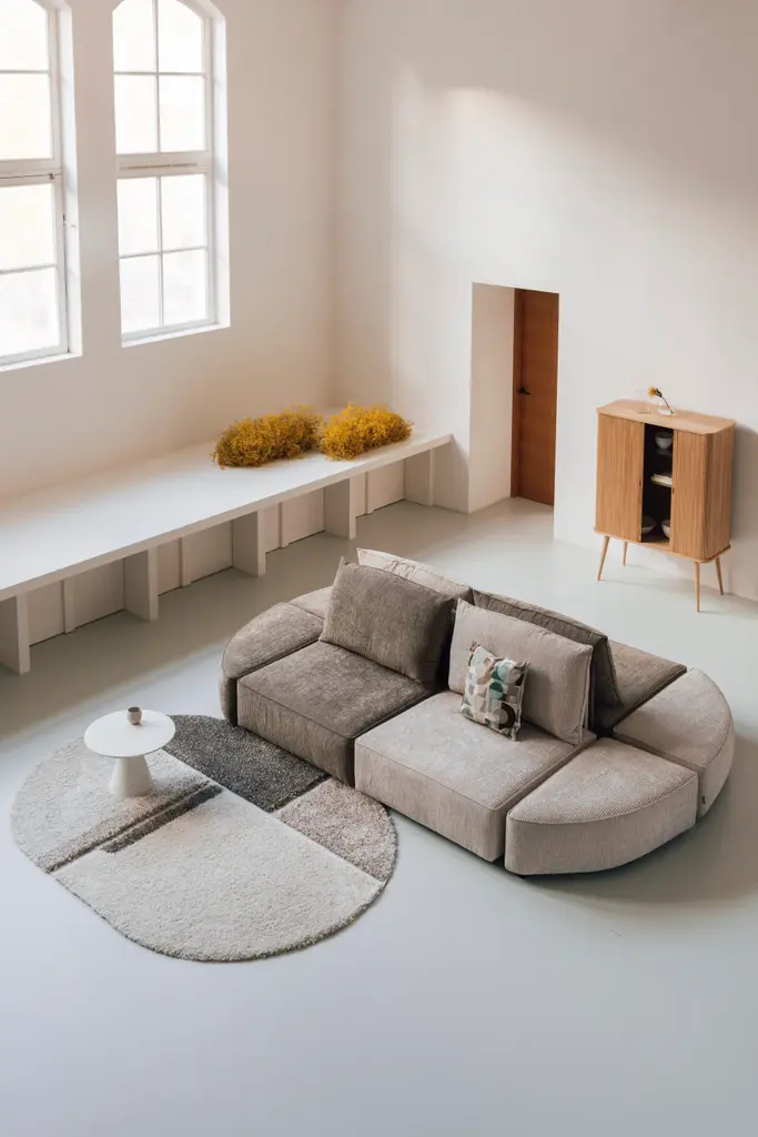 Our Hunter modular sofa invites you to move around with the different elements. Play with the modules and colors and personalize your own freestanding sofa. Hunter can easily take other forms to provide suitable seating in the most diverse situations. The possibilities of Hunter are endless! High-quality upholstery with a very soft ribbed fabric with a beautiful silky sheen. Create different seating areas in your room by placing the elements separately from each other.
