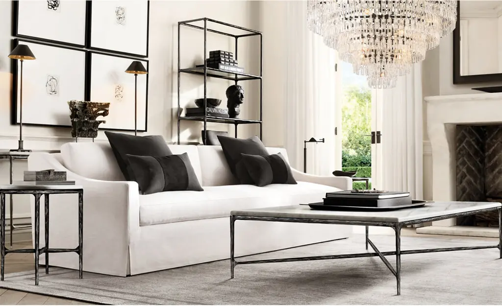 A classic interpretation of the European-inspired slope arm sofa. Low to the ground, deep in profile, sleekly streamlined and slipcovered for casual yet sophisticated appeal, it offers luxurious comfort. ALSO AVAILABLE IN LEATHER SHOP THE ENTIRE COLLECTION