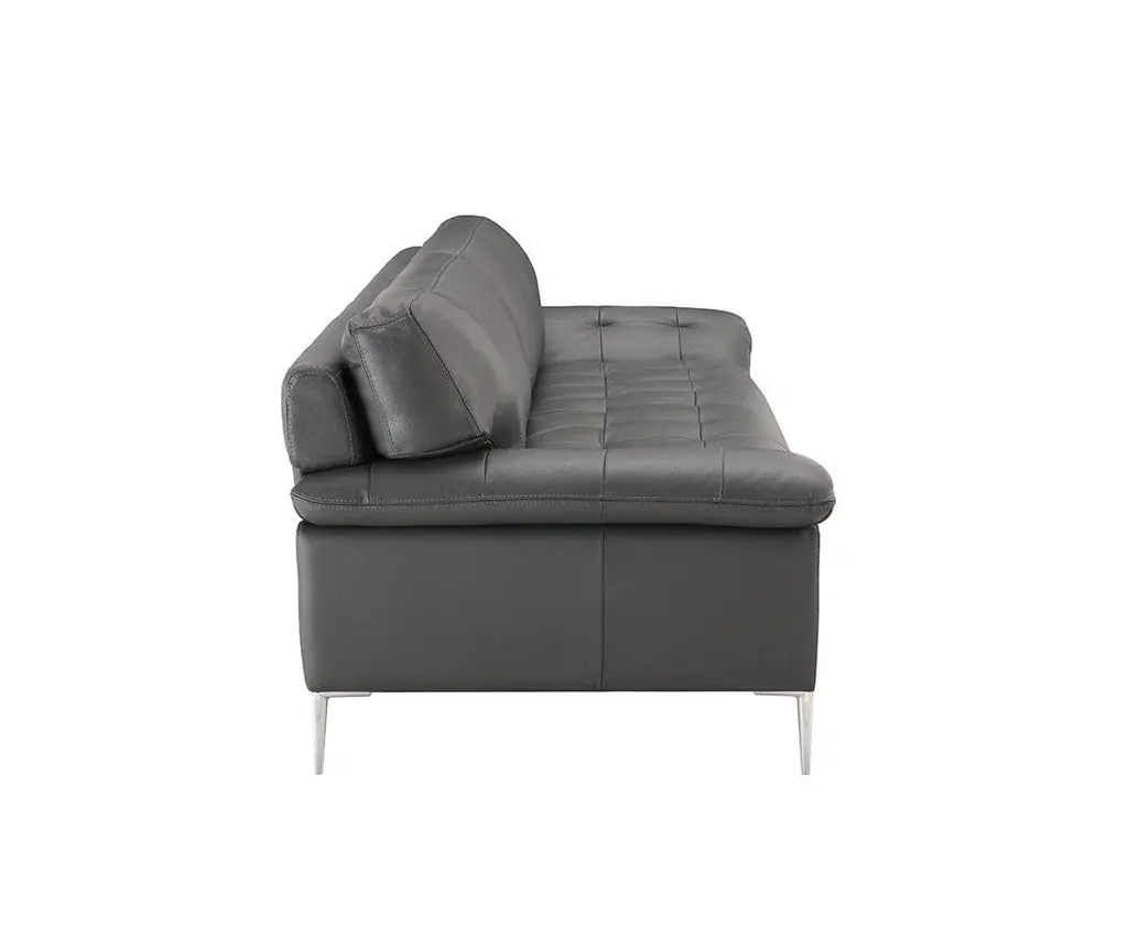 Made in Italy, the Bellini Leather Sofa brings sleek, contemporary design to your home. Elevated by chrome-finished metal legs, this sofa is an ideal place to lounge in style. Featuring wide, comfortably-padded seating and a classic tufted design, this sofa is highlighted by uniquely-sloped arms designed to promote easy rest and relaxation. Pair the Bellini Sofa with the rest of the Bellini Collection to complete the look, or enjoy the eye-catching look and quality feel of this piece all on its own.