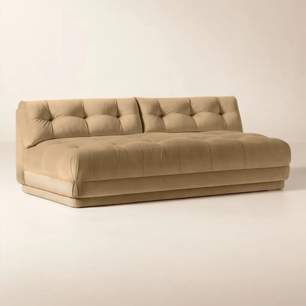 Belmond Tufted Light Brown Velvet Armless Sofa