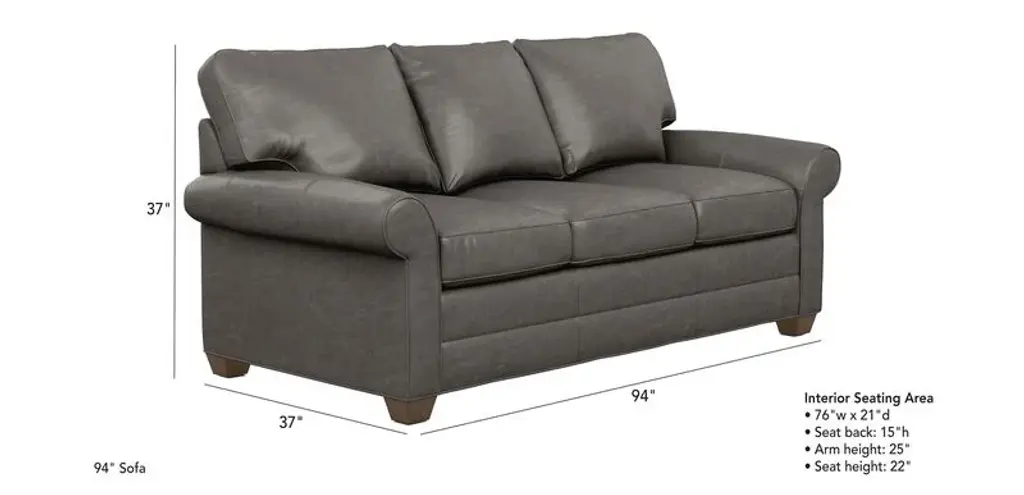 Bennett Roll-arm Leather Three-seat Sofa