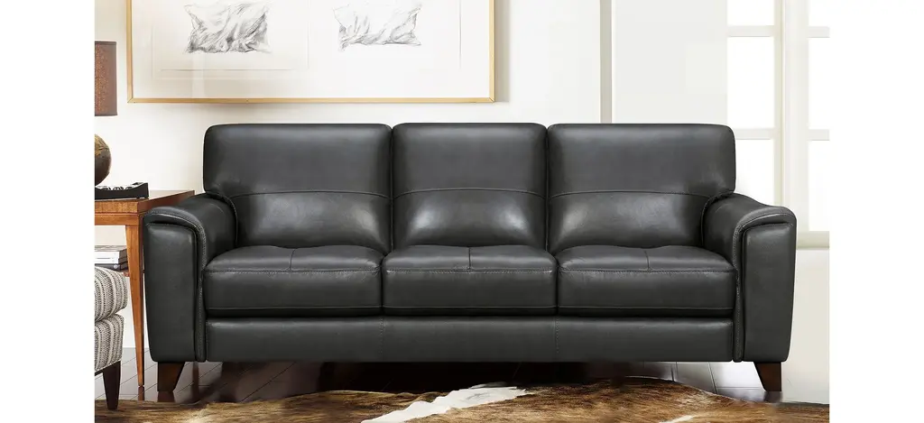 Be embraced by the comfortable cushioning of the Bergen Sofa. With its plump foam-padded cushioned back, this sofa provides you with all the support you need to sit down and relax as long as you want. The Bergen features the combination of square armrests and slanted legs work to provide a unique eye-catching look that stands out. The stylish upholstery is comprised of 100% genuine leather, which is an additional element of refinement, making this a wonderful statement piece for any living area. The Bergen sofa is available in dove gray, espresso, and pewter genuine leather.