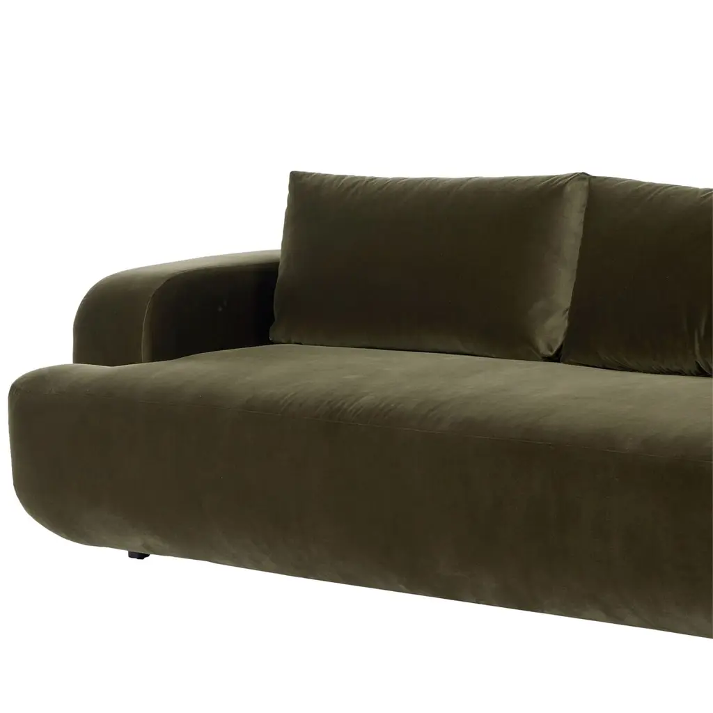 Evoking midcentury Italian design, this sofa feels even more sumptuous than it looks. The plush chenille-like upholstery accentuates the sofa's voluptuous curves; the fabric also has a rub rate of 30,000, allowing it to beautifully withstand daily use. The S-spring seat construction and the generous cushioning ensure long-lassting comfort. The 11-inch-wide arms are perfect for balancing a snack while you snuggle in to watch a movie.