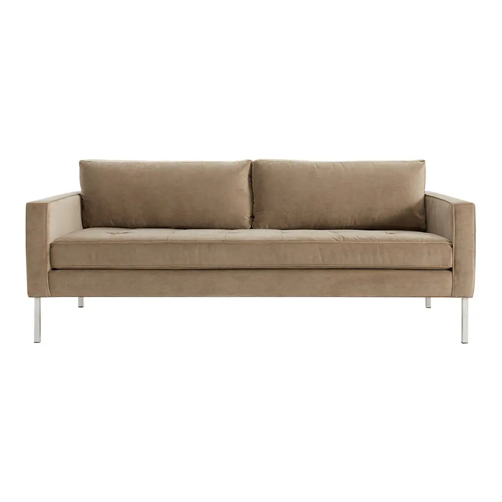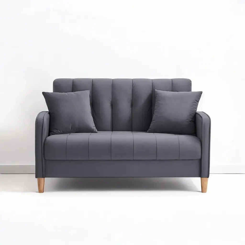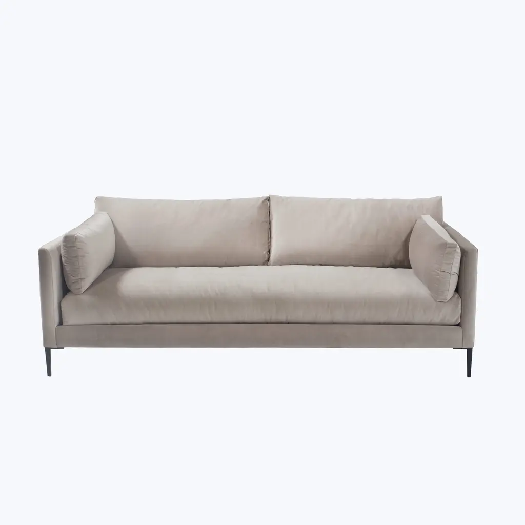 Part of the Beverly Hills collection, this three-seater sofa has a gray econubuck upholstery and is characterized by a soft backrest perfectly shaped for an enhanced comfort. The sofa features black wooden feet and, on the backrest, pillows complete the design thanks to pipeline stitchings to create a unique piece for every modern home. Please ask Concierge for customization options.