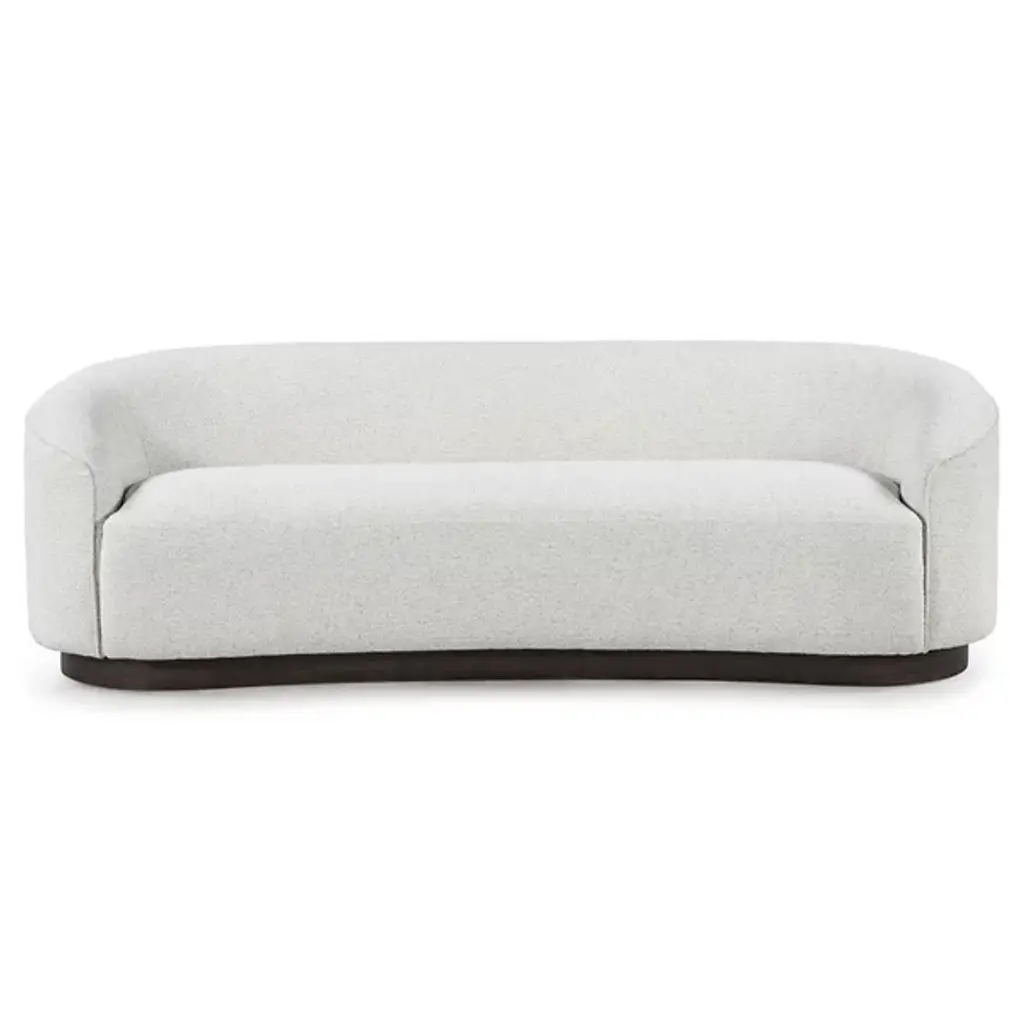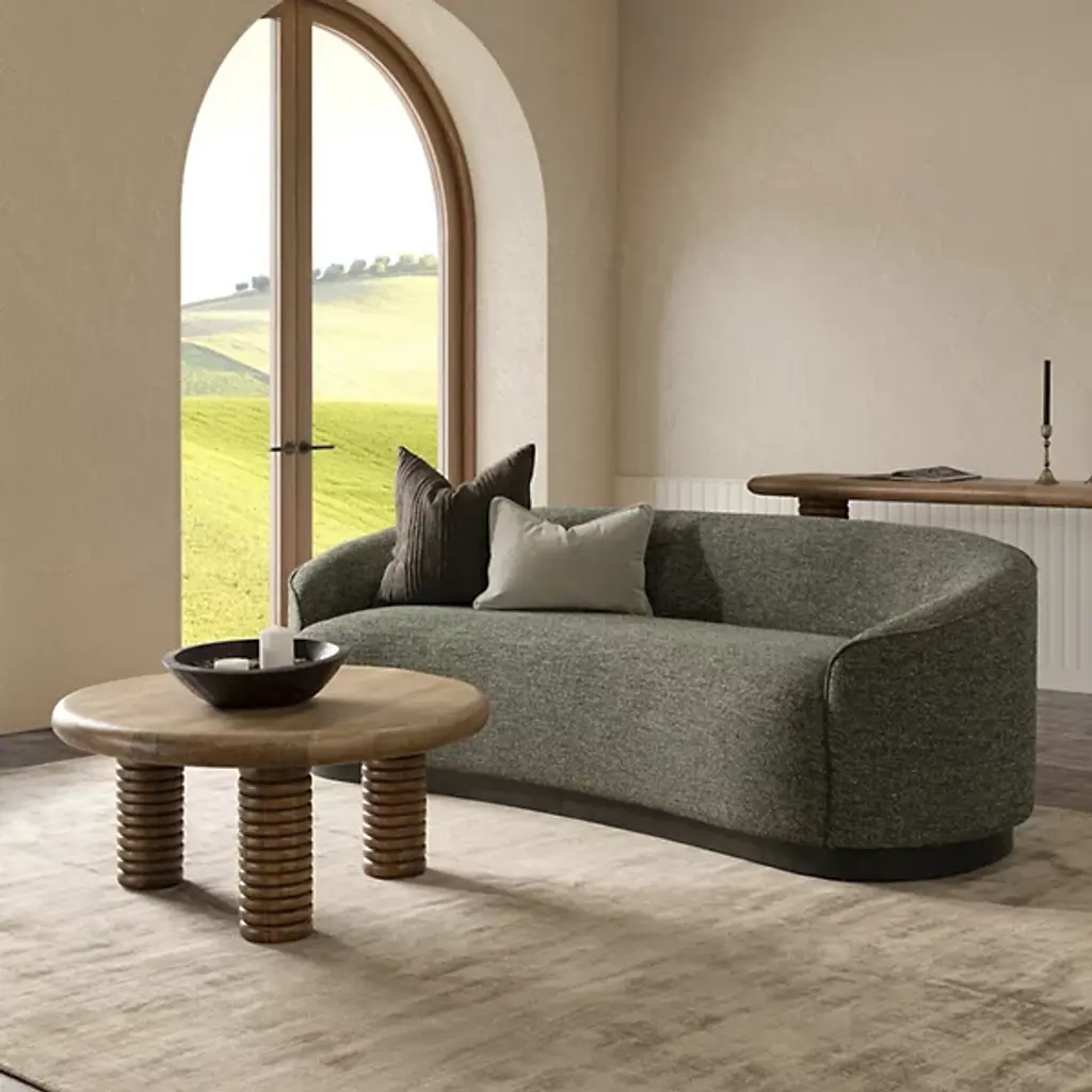 The Beverly Sofa from Classic Home takes inspiration from mid-century curves while delivering modern comfort. Its semi-attached back cushioning provides reliable support that maintains its shape day after day. The solid oak foundation ensures lasting durability, while the nubby upholstery adds tactile interest to living spaces. Adjustable levelers accommodate uneven floors, preventing unwanted movement. This sofa understands the art of lounging - the generous proportions and plush cushioning invite long conversations and peaceful moments. The gently rounded form creates a natural flow in both compact apartments and spacious living rooms.