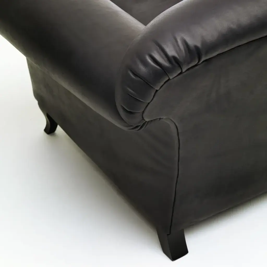 Big Game is inspired by a specific old sofa, classically sober in its lines, open in its volumes and comfortable in a contemporary sense because of the break-down of the internal filling and spring structure. We kept the original proportions of the prototype while changing the height, the seating angle, the inside filling, the skin and the stitching, both technically and aesthetically. This deconstruction process further increases the sofa’s softness and overall aged character while paradoxically neutralizing the antiquity of the prototype. Materials:Solid poplar frame, helical metal coil springs, polyurethane core, dacron lining coupled with the cover material, with covers in cotton velvet, aniline leather or customer fabric, down-filled seat cushions.
