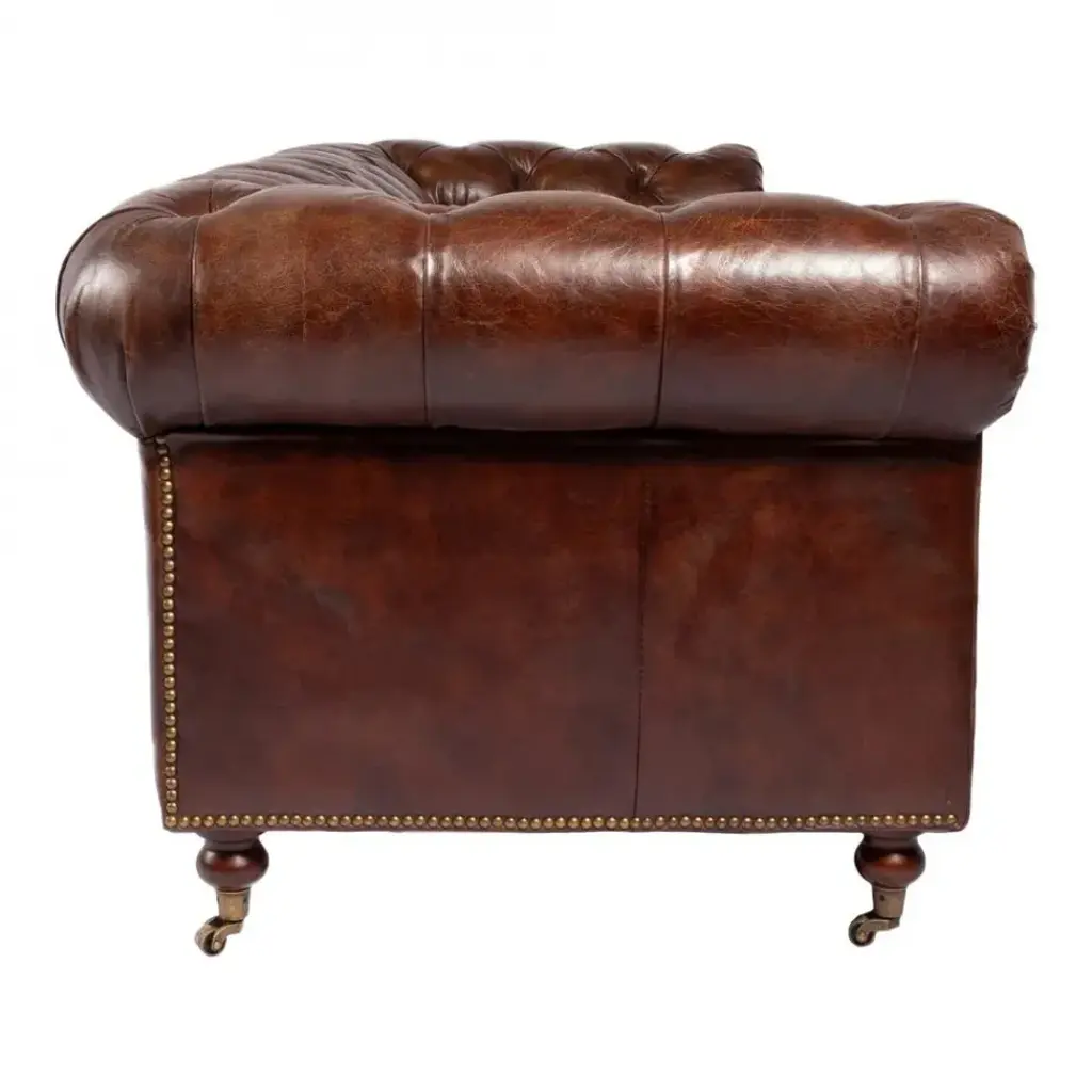 Capturing the bold elements of traditional design, the Birmingham Sofa adds sophistication to your living space with its top-grain leather's rich brown. Sharp details are apparent in the chesterfield's tufted back, rolled arms, and meticulously placed brass detailing—pairs nicely with an Old Fashioned.